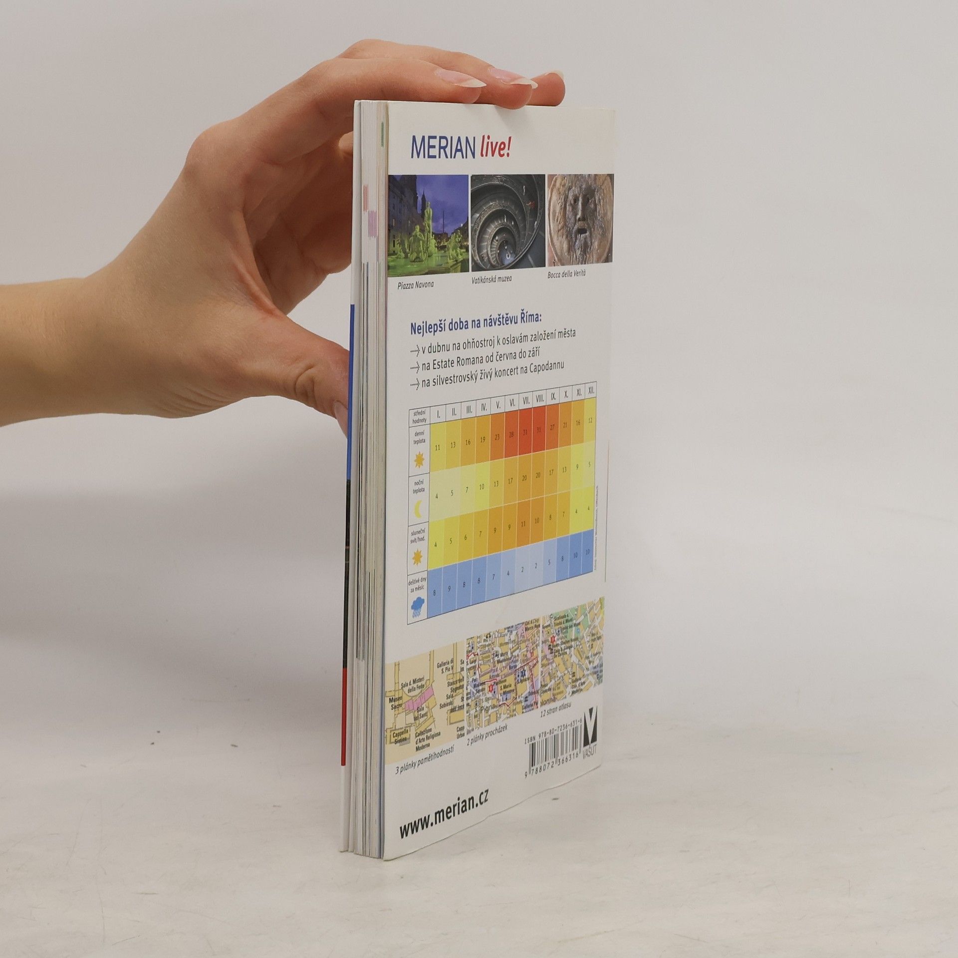 Průvodce seznamuje ve stručnosti s nejvýznamnějšími kulturními a uměleckými památkami italské metropole a Vatikánu. Česká mutace vybraných svazků německé ediční řady Merian přibližuje čtenářům ve stručnosti místa, která by při své návštěvě hlavního města Itálie rozhodně neměli vynechat. Kromě popisu architektonických a uměleckých pamětihodností tvoří podstatnou součást příručky informace o možnostech ubytování, stravování, nákupů, kulturního vyžití i o akcích pro děti. Množství barevných fotografií, doplňkové plánky a mapky.