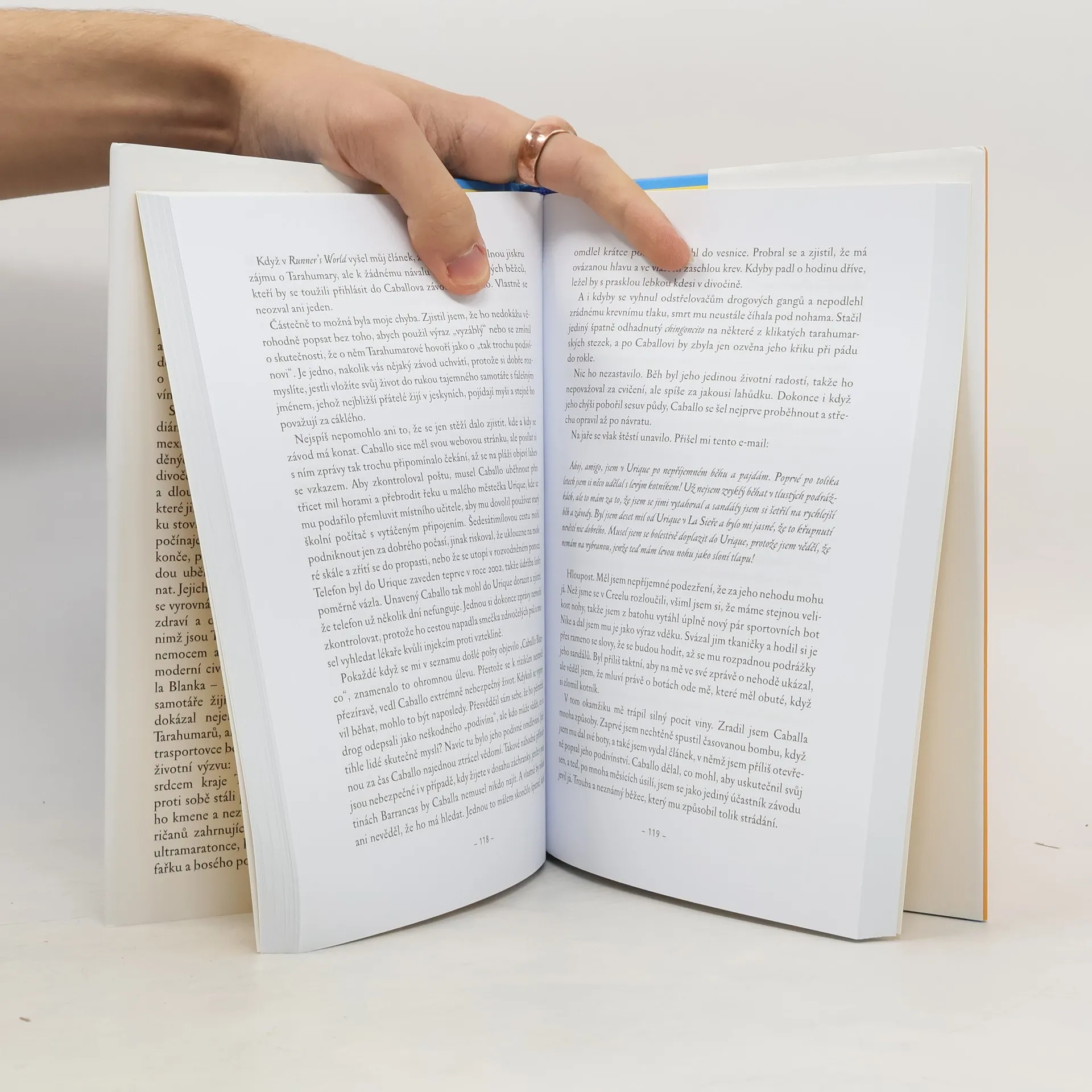 Autor knihy se jako miliony jiných amatérských běžců aspoň jednou ročně vážně zranil. Po cyklech bolestí, injekcí a střídání běžeckých bot chtěl na doporučení lékařů s běháním skoncovat. Místo toho se však vydal do kaňonů v Mexiku, kde žijí Tarahumarové – nejtajemnější, nejzdravější a nejšťastnější běžci na planetě. Běhání v extrémních podmínkách jen v sandálech je pro ně stejně přirozené a snadné jako dýchání. Čtivý příběh o běžcích na stokilometrové trati autor doplňuje o nejnovější vědecké poznatky.