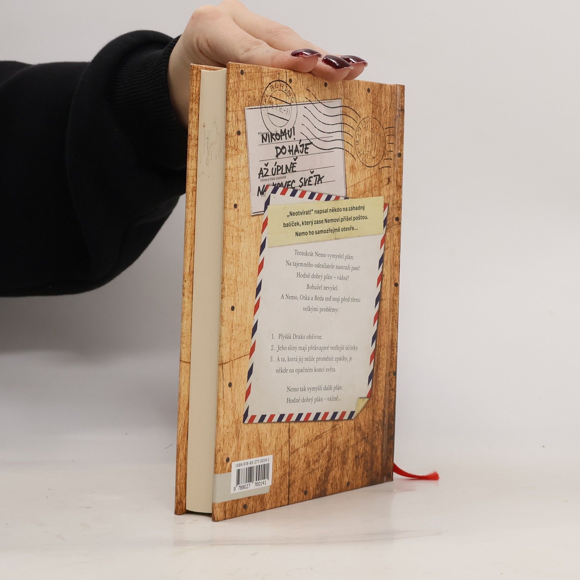 „Neotvírat!“ napsal někdo na podivný balíček, který Nemovi už zase přišel poštou. Tentokrát má Nemo plán, jak neznámého odesílatele vypátrat. Nastraží na něj past! Tak si to aspoň představoval. Stačí jen chvilka nepozornosti a návnada, malý plyšový drak s krásně třpytivým břichem, je pryč. Když se drak znovu objeví, Otka, Nemo a Béda a s nimi celé městečko Horní Suchopár se začnou potit. Dráček Drako nejenže plive oheň, umí i další kousky! Slunce žhne pořád víc, v rozpáleném městě je už 49 stupňů ve stínu! Ta, která vše může vrátit zpátky, je ale tisíce kilometrů daleko. Podaří se našim třem kamarádům zvládnout hrozící katastrofu? Další příběh z oblíbené série dobrodružství pro děti pobaví malé i velké čtenáře nečekanými zápletkami i humornými zvraty. Vtipné vyprávění o dětském přátelství ve světě dospělých doprovázejí nezaměnitelné ilustrace Fréderica Betranda. Rodičům při čtení na dobrou noc bude možná trochu horko...