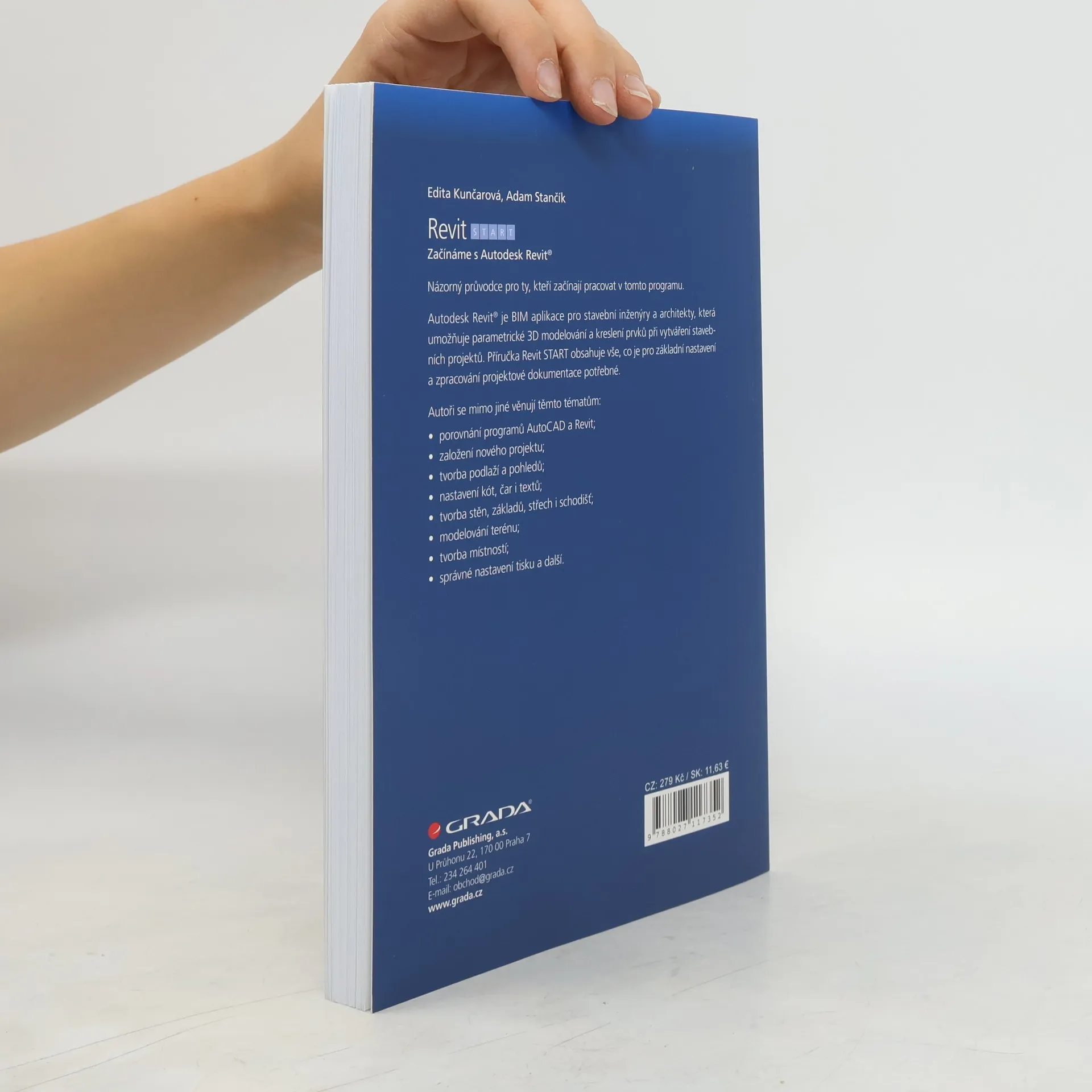 Názorný průvodce pro ty, kteří začínají pracovat v programu Autodesk Revit®. Autodesk Revit® je CAD a BIM aplikace pro stavební inženýry a architekty, která umožňuje parametrické 3D modelování a kreslení prvků při vytváření stavebních projektů. Příručka Revit START obsahuje vše, co je pro základní nastavení a zpracování projektové dokumentace potřebné. Autoři se mimo jiné věnují těmto tématům: • porovnání programů AutoCAD a Revit; • založení nového projektu; • tvorba podlaží a pohledů; • nastavení kót, čar i textů; • tvorba stěn, základů, střech i schodišť; • modelování terénu; • tvorba místností; • správné nastavení tisku a další.