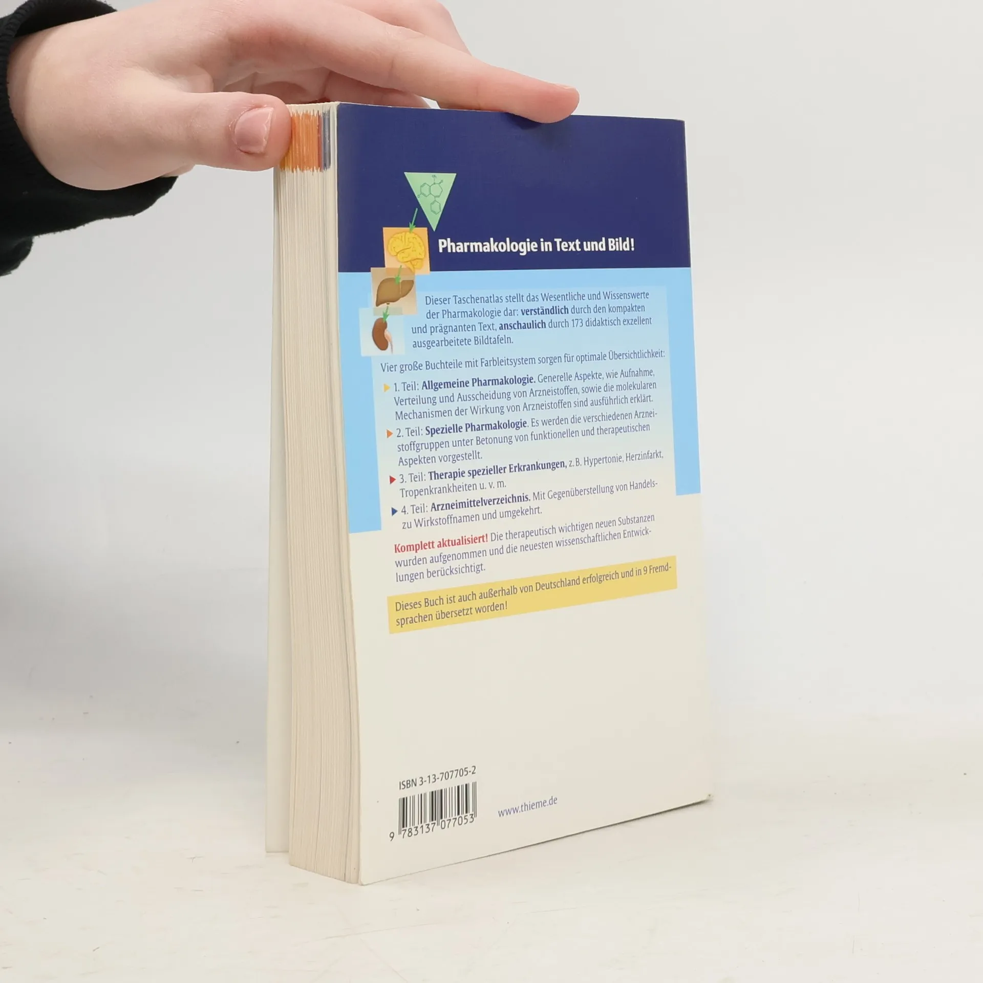 Aktualisierte und erweiterte Neuauflage des Taschenatlas, den sowohl Medizin-, Biologie- oder Chemiestudenten als auch interessierte Auszubildende der Gesundheitsberufe als leichten Einstieg in die Pharmakologie nutzen können. Die Aktualisierung betrifft vor allem veränderte Lehrmeinungen wie z.B. die über den Einsatz von Betablockern bei Herzinsuffizienz und neue Wirkstoffe. Verschiedene Neuentwicklungen bei den antiviralen Präparaten sind hinzugekommen. Auch so genannte Lifestyle-Präparate wie Orlistat und Bupropion fehlen nicht. Einprägsame Illustrationen auf der einen Seite erklären pointiert den Lerntext auf der anderen. Ein didaktisch sinnvoll aufbereitetes Lehrbuch für die oben genannten Zielgruppen, das aber auch von interessierten Laien zu nutzen ist. Vorauflagen löschen. (I. Müller-Boysen)