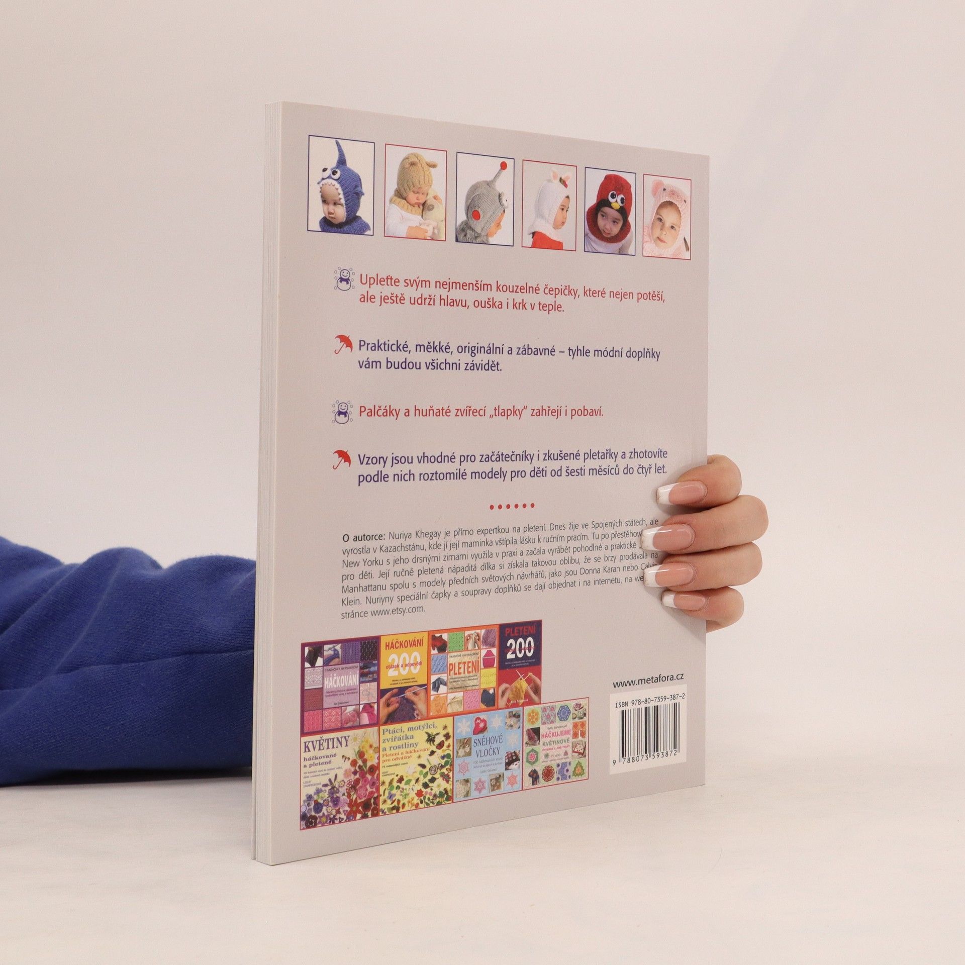 20 pletených dětských doplňků na motivy zvířátek… Nestačí vám nabídka obchodů pro děti a rádi byste jim pořídili něco netradičního a nápaditého, co nikdo jiný mít nebude? Upleťte svým nejmenším kouzelné čepičky, které nejen potěší, ale ještě udrží hlavu, ouška i krk v teple. Jsou praktické, měkké, originální a zábavné – tyhle módní doplňky vám budou všichni závidět. Palčáky a huňaté zvířecí „tlapky“, ke kterým vám tahle knížka také přinese inspiraci, zahřejí i pobaví. Vzory jsou vhodné pro začátečníky i zkušené pletařky a zhotovíte podle nich roztomilé modely pro děti do šesti měsíců do čtyř let.