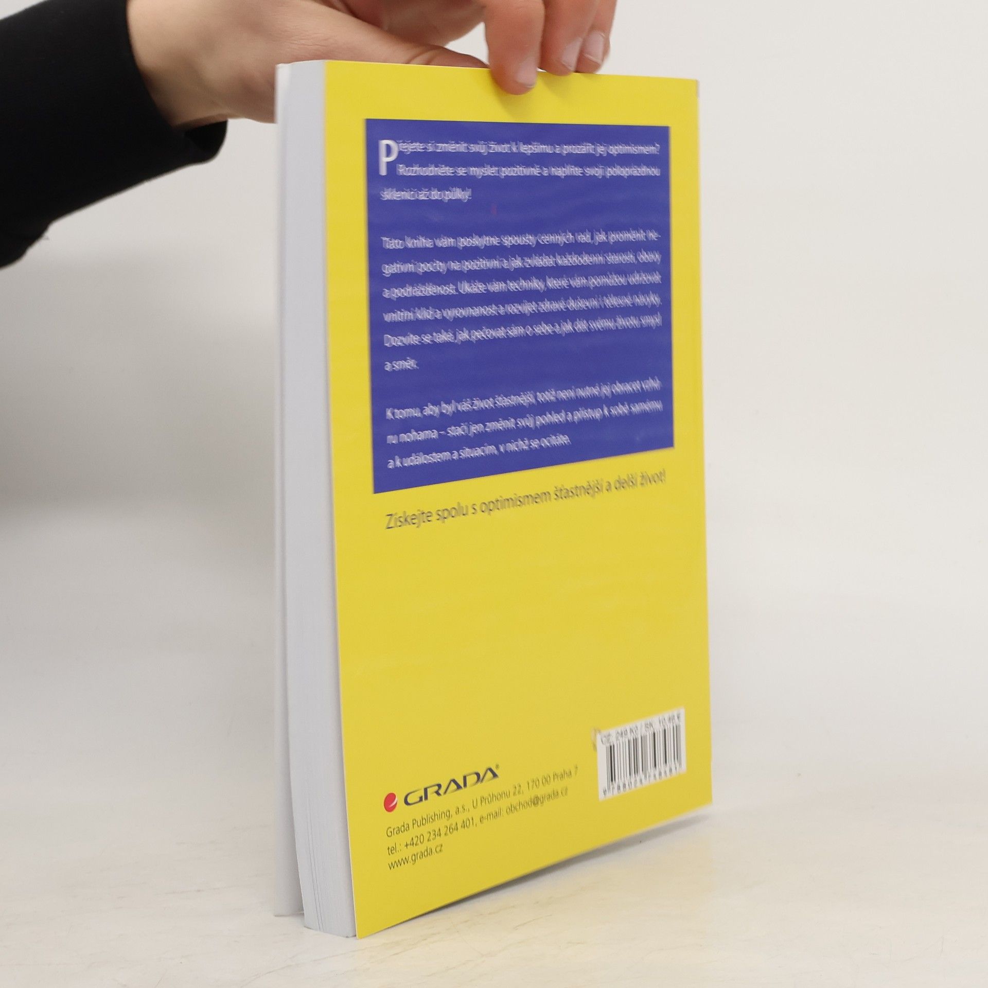 Jak myslet pozitivně a vyhnout se negativnímu myšlení, které vás svazuje? Jaké techniky vám pomůžou rozvinout zdravé duševní návyky? Pomocí jakých jednoduchých kroků změníte své negativní pocity na pozitivní? Jak čelit obavám a úzkosti? Jak zvládnout hněv a podráždění? Jak se vypořádat s negativně uvažujícími lidmi a omezit jejich vliv na sebe? Pozitivně myslet neznamená radovat se z prohry či bolesti, ani ignorovat a přehlížet problémy, je to schopnost akceptovat veškeré vzestupy a pády života, cítit vděk za to, co máme, a dívat se do budoucnosti s optimismem a nadějí. Díky této knížce se pro vás pozitivní myšlení stane vlastním a více si užijete života se všemi jeho stránkami. (jak změnit svůj přístup a dívat se na život optimisticky)