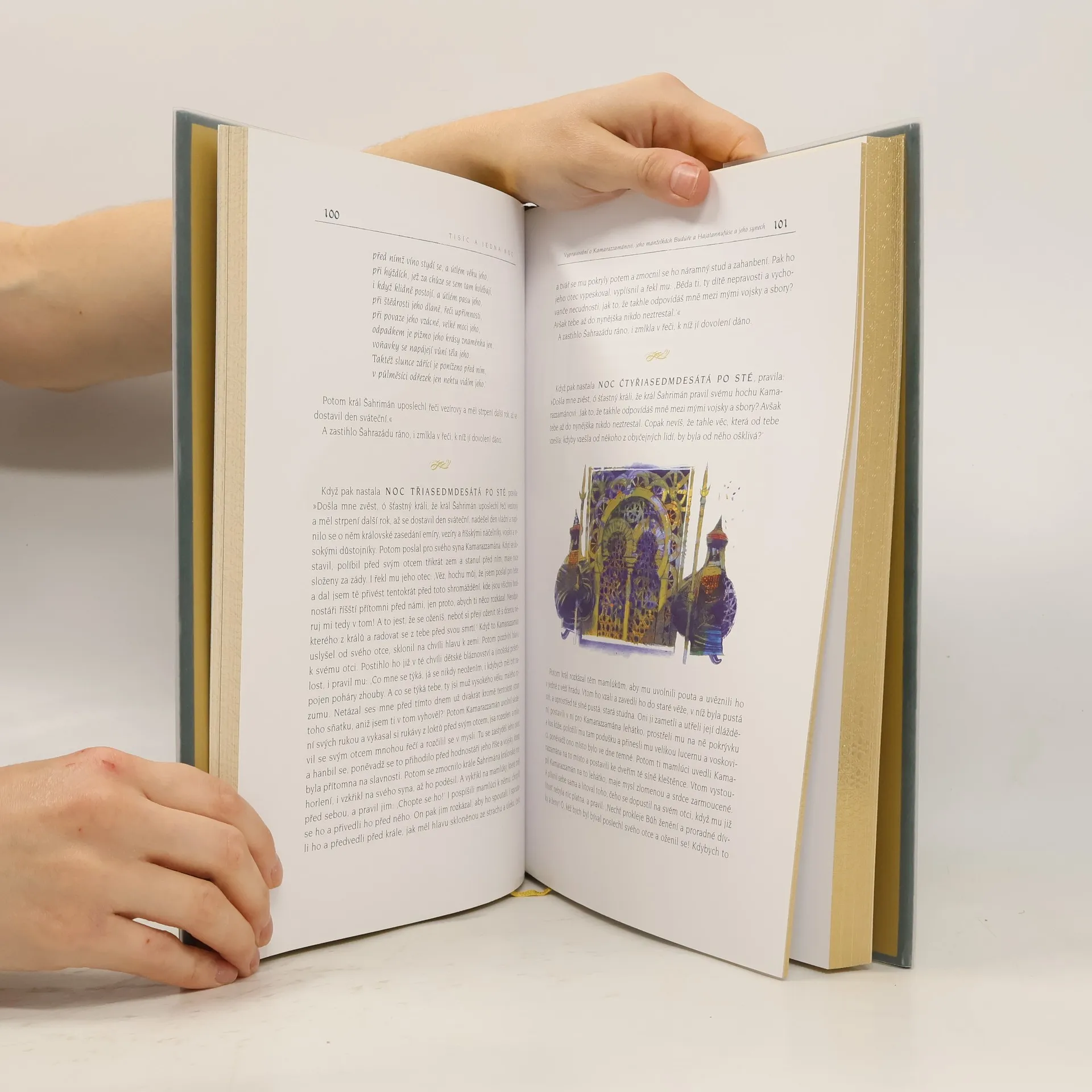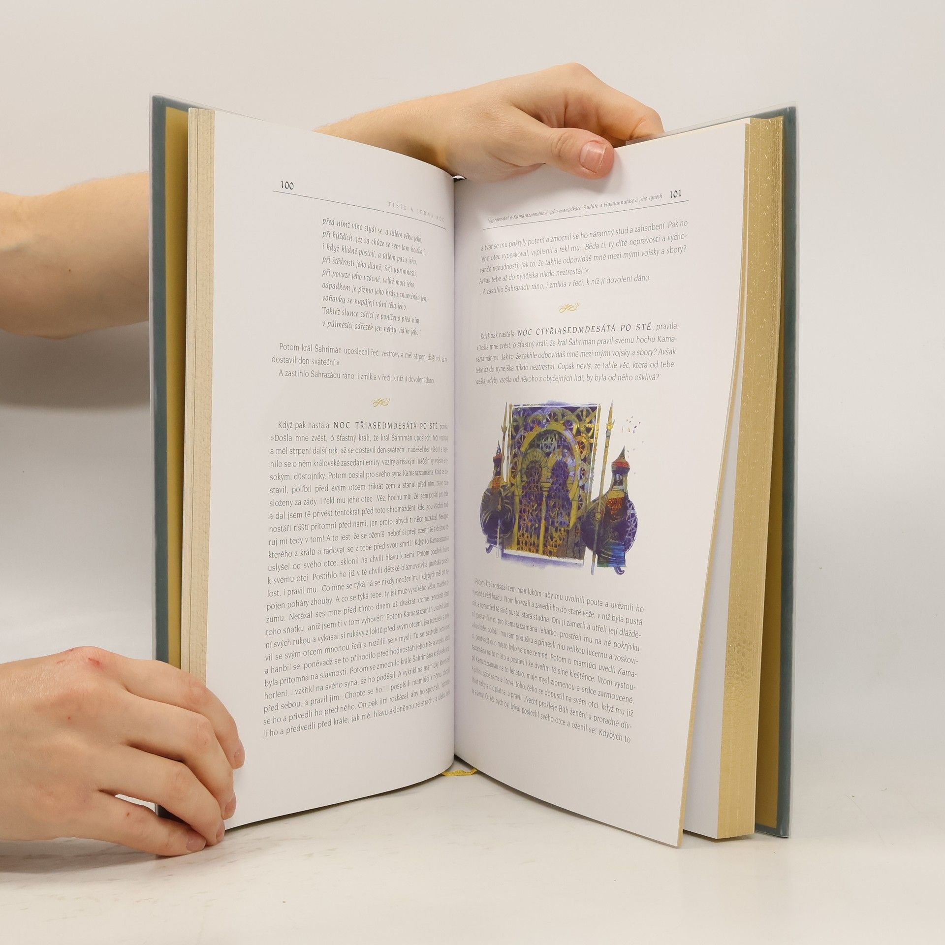 3. kniha z osmi. Sbírka Tisíce a jedné noci se stala součástí zlatého fondu světové literatury. Toto výjimečné dílo inspirovalo přední světové literáty a mělo velký vliv na evropskou uměleckou tvorbu. Od vydání prvního překladu do evropského jazyka uplynulo již 300 let! Ojedinělé dílo vzbuzuje dodnes pozornost bohatstvím a důmyslností příběhů, exotickým koloritem, vtipem a kresbou nevšedního prostředí, znaky, které jim vtiskli vypravěči, aby stejně jako Šahrazád zaujali posluchače. Výběr námětů je široký, od krátkých anekdot po legendy, které prostým posluchačům dávaly naději, že na každého někde čeká bohatství a štěstí. Toto je luxusní, plně ilustrované, v hedvábí vázané vydání se zlatou ořízkou v uznávaném překladu prof. Felixe Tauera, s bohatým poznámkovým aparátem. http://1000ajednanoc.cz/ ISBN pro soubor: 978-80-207-1343-8