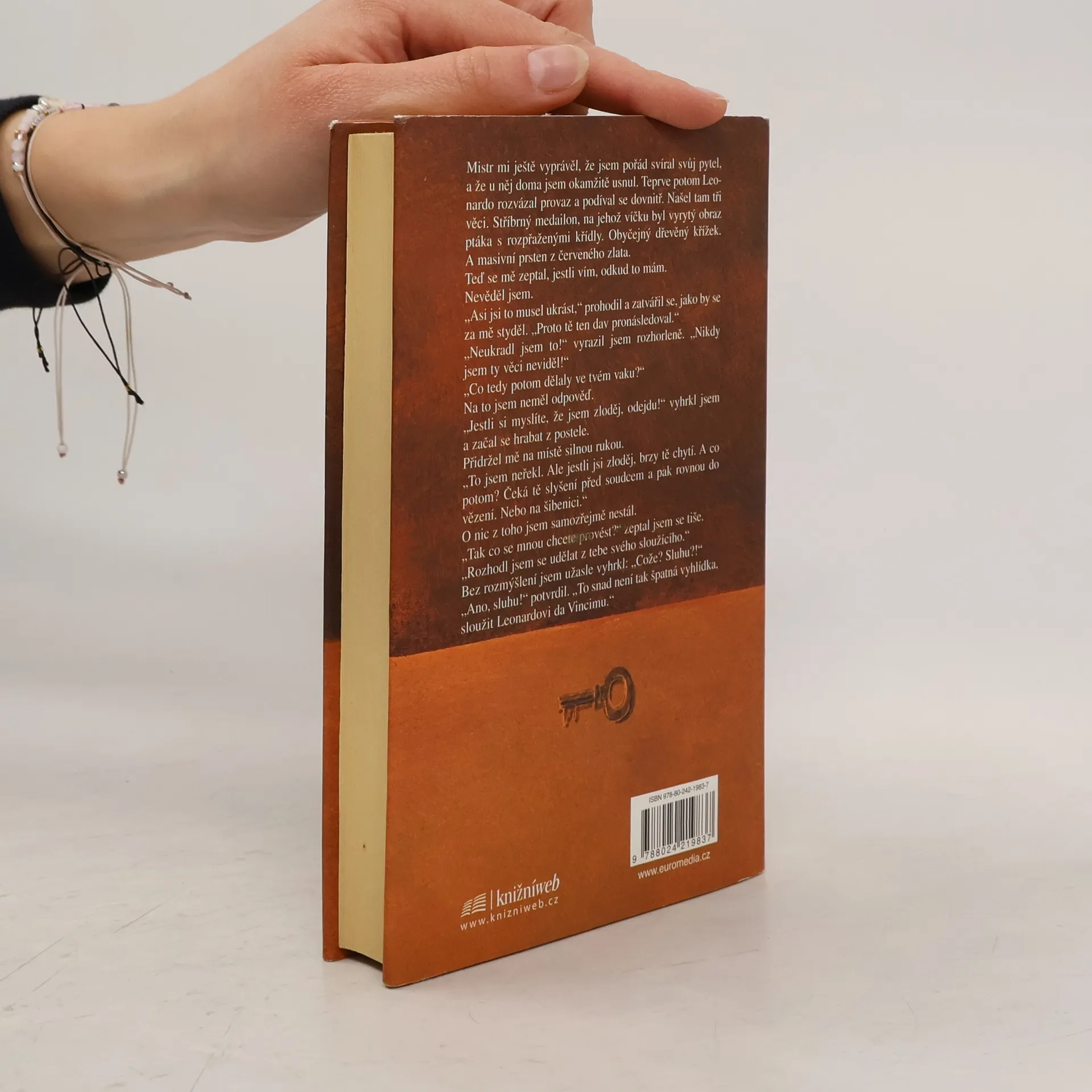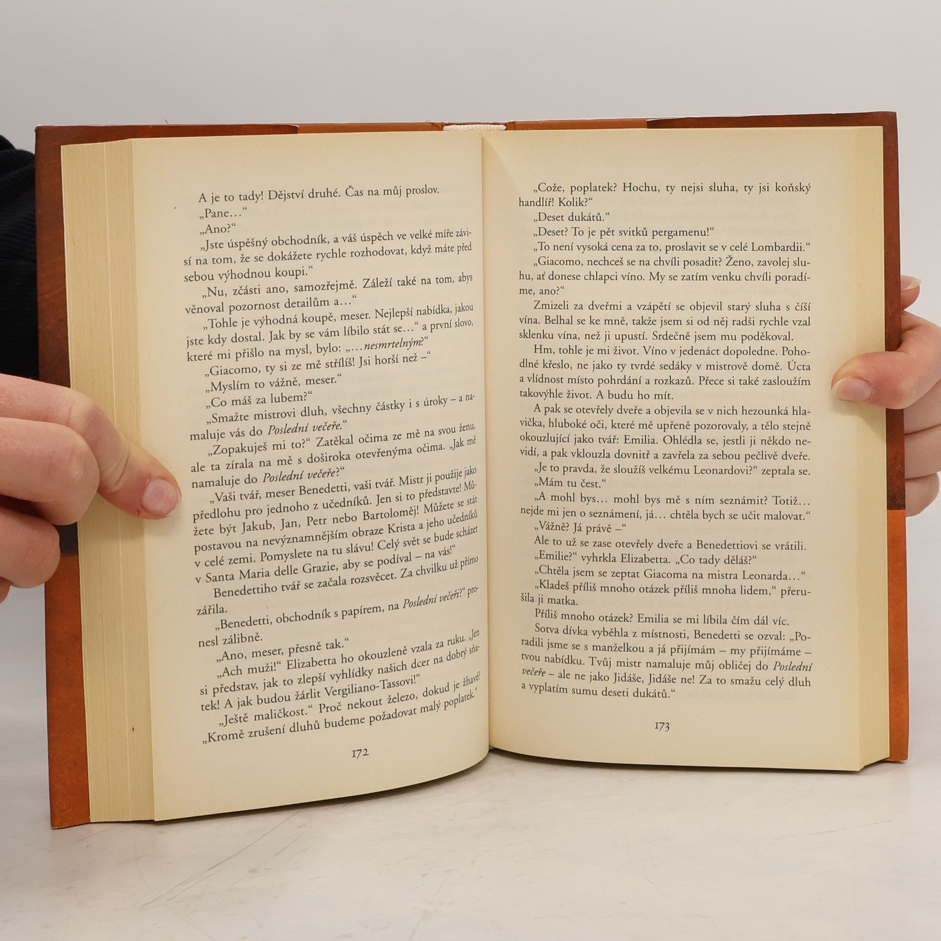 Milán, 1497. Renesance vrcholí a patnáctiletému Giacomovi, mladému sloužícímu věhlasného umělce Leonadra da Vinciho, začíná nejtěžší období v životě. Jeho mistr už dva roky pracuje na nástěnné malbě POSLEDNÍ VEČEŘE, svém největším díle. Ale dokončí ji vůbec? Vždyť sotva začal! Mocný milánský kníže si přeje, aby byl obraz hotov do Velikonoc, kdy má město navštívit papež. Giacomo ví, že pokud Leonardo knížeti nevyhoví, vládce Milána se chystá pozvat jistého mladého výtvarného génia jménem Michelangelo, aby malbu dokončil místo něj. To znamená, že by Leonardo nedostal zaplaceno. Milánští kupci, u nichž si za dva roky nadělal už pořádné dluhy, se bouří. Nejenom že už Giacomovu pánovi odmítají dávat zboží, ale chtějí na něj podat žalobu k milánskému soudu. Ale Giacoma trápí i něco jiného. I když si poradí s tímhle problémem, ocení to mistr? Vypadá to, jako by mu Leonardo stále nedůvěřoval. Odmítá Giacoma učit malovat a splnit tak chlapcovu největší touhu. A odmítá mu pomoci při hledání Giacomových rodičů, po nichž chlapci zůstal jen dřevěný křížek, tajemný prsten a medailon. Giacomo se však náhodou setkává se záhadným cizincem, alchymistou, který tajně přijel do Milána, sbírajícícho síly před válkou s Francií. Mág Giacomovi slíbí, že když mu chlapec pomůže zprostředkovat jisté setkání, změní tím svůj život ... i dějiny, které se teprve začnou psát...