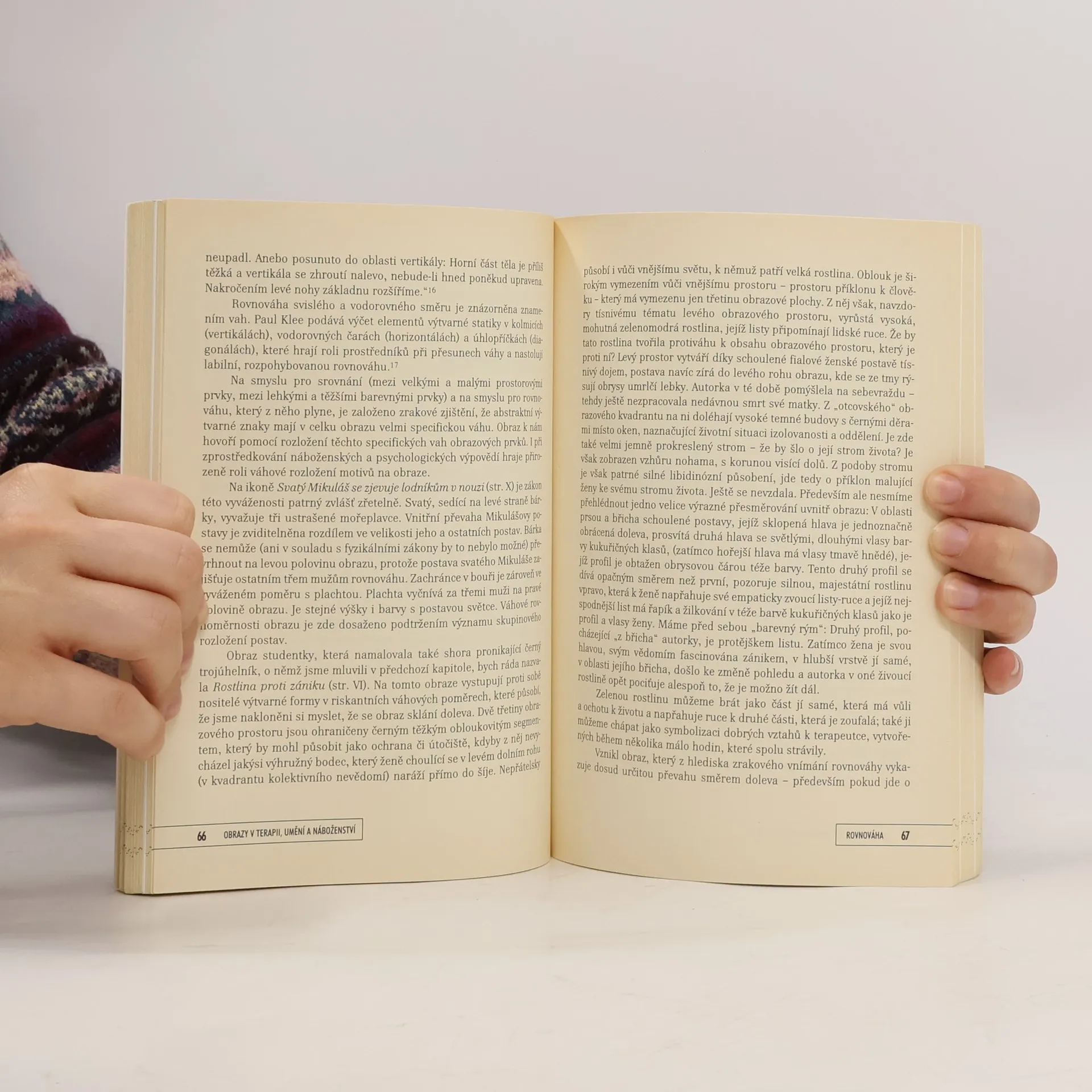 Člověku je jako jedinému tvoru dána schopnost vyjadřovat se v obrazech. Plochu obrazu je přitom možné vnímat jako prostor plný bohatých symbolických významů. Porozumění těmto významům - od volby formátu, přes vnitřní dynamiku až po barvy jednotlivých motivů - může pozorovateli otevřít cestu k hlubšímu pochopení obrazového sdělení. Tento přístup, jenž vychází z řady klinických zkušeností a shrnuje množství dílčích teorií, lze s užitkem použít jak v klinické práci s obrazy pacientů, tak i při pozorování profánních i sakrálních obrazů. Text knihy je provázen výkladem konkrétních obrazů, na kterých jsou jednotlivé teorie objasněny.