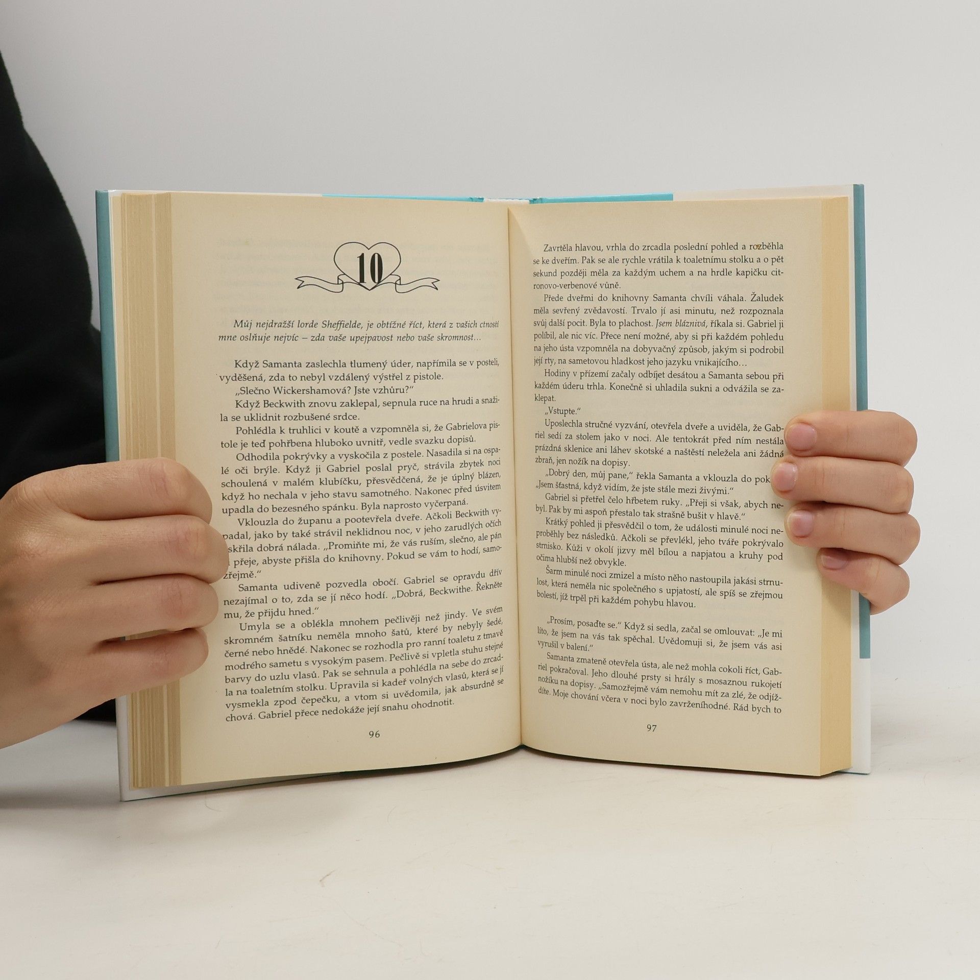 Anglie 1806. Vévoda Gabriel Fairchild si svou srdnatostí v bitvě u Trafalgaru získal titul hrdiny, ale zaplatil za něj ztrátou zraku a víry v budoucnost. Zahořklý a odvržený milovanou ženou se uchýlí na rodinné panství na venkově, kde mu dělají společnost pouze loajální sluhové. Plný zloby na celý svět se protlouká jedním temným dnem za druhým a pozvolna si začíná připadat spíše jako zvíře než jako člověk. A právě v té době přijíždí na panství mladá sebejistá dáma Samantha Wickershamová. Má se stát Gabrielovou laskavou ošetřovatelkou, ale osud zamíchal karty jinak. Hned po první prudké hádce Samantha vypoví arogantnímu vévodovi válku, v níž místo zbraní používá břitký jazyk. Ani Gabriel není nadšen a označuje svou ošetřovatelku za protivnou ženskou, ale ve skrytu duše ho přitahuje její smysl pro humor a věcnost, s jakou odráží jeho návaly bolestínství. Nahlas sice prohlašuje, že ji nemůže vystát, avšak její přítomnost v něm vyvolává city, které už pokládal za navždy ztracené. Samantha pozvolna vnáší světlo do Gabrielova života i srdce a díky tomu oba poznávají, že některá tajemství a rozkoše je nejlepší odhalovat v temnotě.