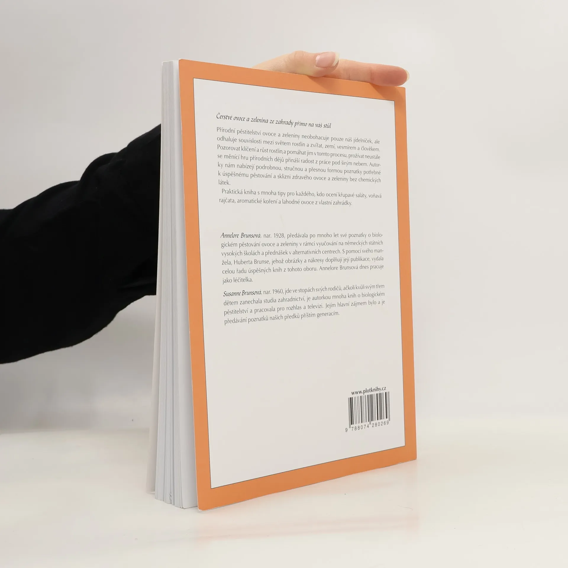Čerstvé ovoce a zelenina ze zahrady přímo na váš stůl Přírodní pěstitelství ovoce a zeleniny neobohacuje pouze náš jídelníček, ale odhaluje souvislosti mezi světem rostlin a zvířat, zemí, vesmírem a člověkem. Pozorovat klíčení a růst rostlin a pomáhat jim v tomto procesu, prožívat neustále se měnící hru přírodních dějů přináší radost z práce pod širým nebem. Autorky nám nabízejí podrobnou, stručnou a přesnou formou poznatky potřebné k úspěšnému pěstování a sklizni zdravého ovoce a zeleniny bez chemických látek. Praktická kniha s mnoha tipy pro každého, kdo ocení křupavé saláty, voňavá rajčata, aromatické koření a lahodné ovoce z vlastní zahrádky. Annelore Brunsová, nar. 1928, předávala po mnoho let své poznatky o biologickém pěstování ovoce a zeleniny v rámci vyučování na německých státních vysokých školách a přednášek v alternativních centrech. S pomocí svého manžela, Huberta Brunse, jehož obrázky a nákresy doplňují její publikace, vydala celou řadu úspěšných knih z tohoto oboru. Annelore Brunsová dnes pracuje jako léčitelka. Susanne Brunsová, nar. 1960, jde ve stopách svých rodičů, ačkoli kvůli svým třem dětem zanechala studia zahradnictví, je autorkou mnoha knih o biologickém pěstitelství a pracovala pro rozhlas a televizi. Jejím hlavní zájmem bylo a je předávání poznatků našich předků příštím generacím.