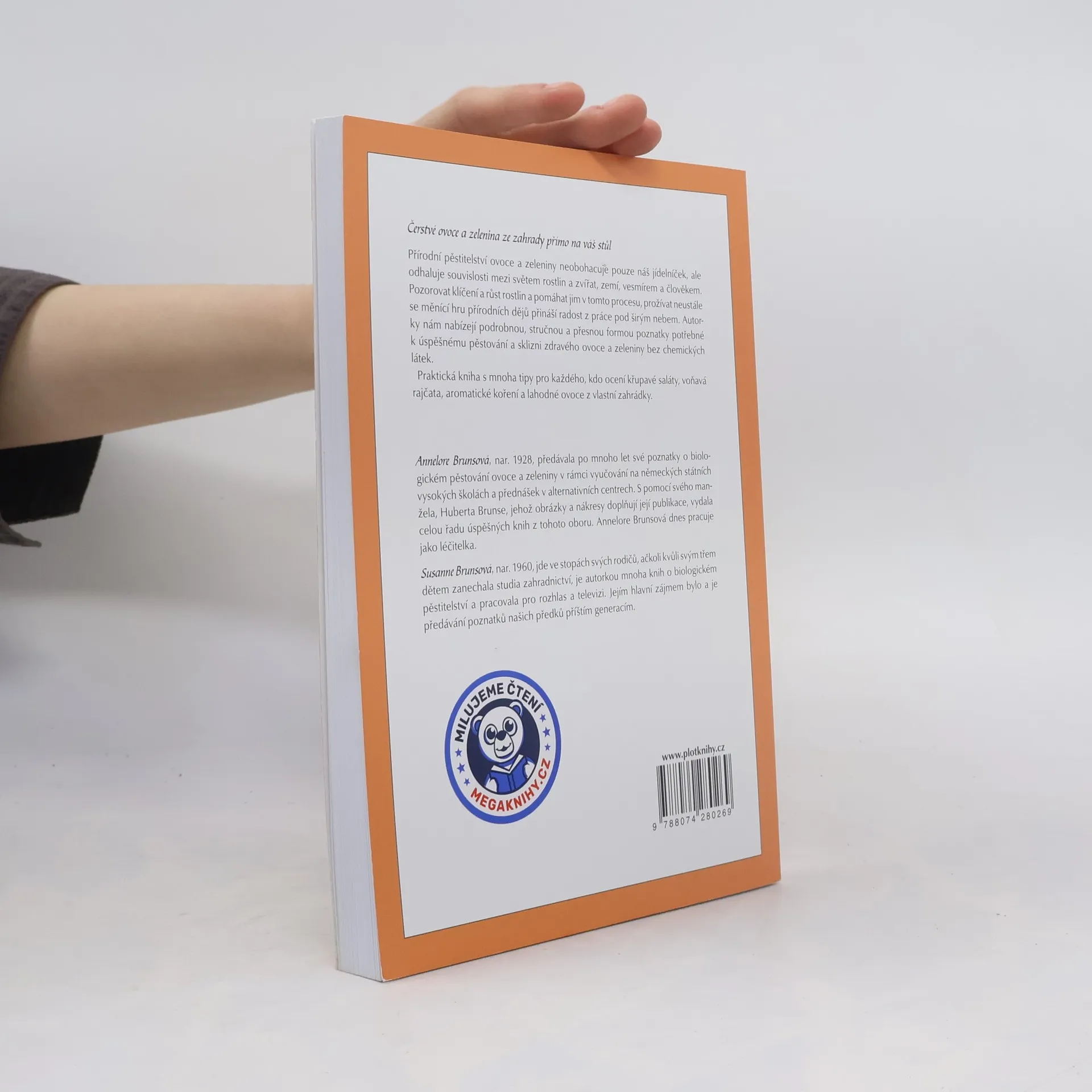 Čerstvé ovoce a zelenina ze zahrady přímo na váš stůl Přírodní pěstitelství ovoce a zeleniny neobohacuje pouze náš jídelníček, ale odhaluje souvislosti mezi světem rostlin a zvířat, zemí, vesmírem a člověkem. Pozorovat klíčení a růst rostlin a pomáhat jim v tomto procesu, prožívat neustále se měnící hru přírodních dějů přináší radost z práce pod širým nebem. Autorky nám nabízejí podrobnou, stručnou a přesnou formou poznatky potřebné k úspěšnému pěstování a sklizni zdravého ovoce a zeleniny bez chemických látek. Praktická kniha s mnoha tipy pro každého, kdo ocení křupavé saláty, voňavá rajčata, aromatické koření a lahodné ovoce z vlastní zahrádky. Annelore Brunsová, nar. 1928, předávala po mnoho let své poznatky o biologickém pěstování ovoce a zeleniny v rámci vyučování na německých státních vysokých školách a přednášek v alternativních centrech. S pomocí svého manžela, Huberta Brunse, jehož obrázky a nákresy doplňují její publikace, vydala celou řadu úspěšných knih z tohoto oboru. Annelore Brunsová dnes pracuje jako léčitelka. Susanne Brunsová, nar. 1960, jde ve stopách svých rodičů, ačkoli kvůli svým třem dětem zanechala studia zahradnictví, je autorkou mnoha knih o biologickém pěstitelství a pracovala pro rozhlas a televizi. Jejím hlavní zájmem bylo a je předávání poznatků našich předků příštím generacím.
