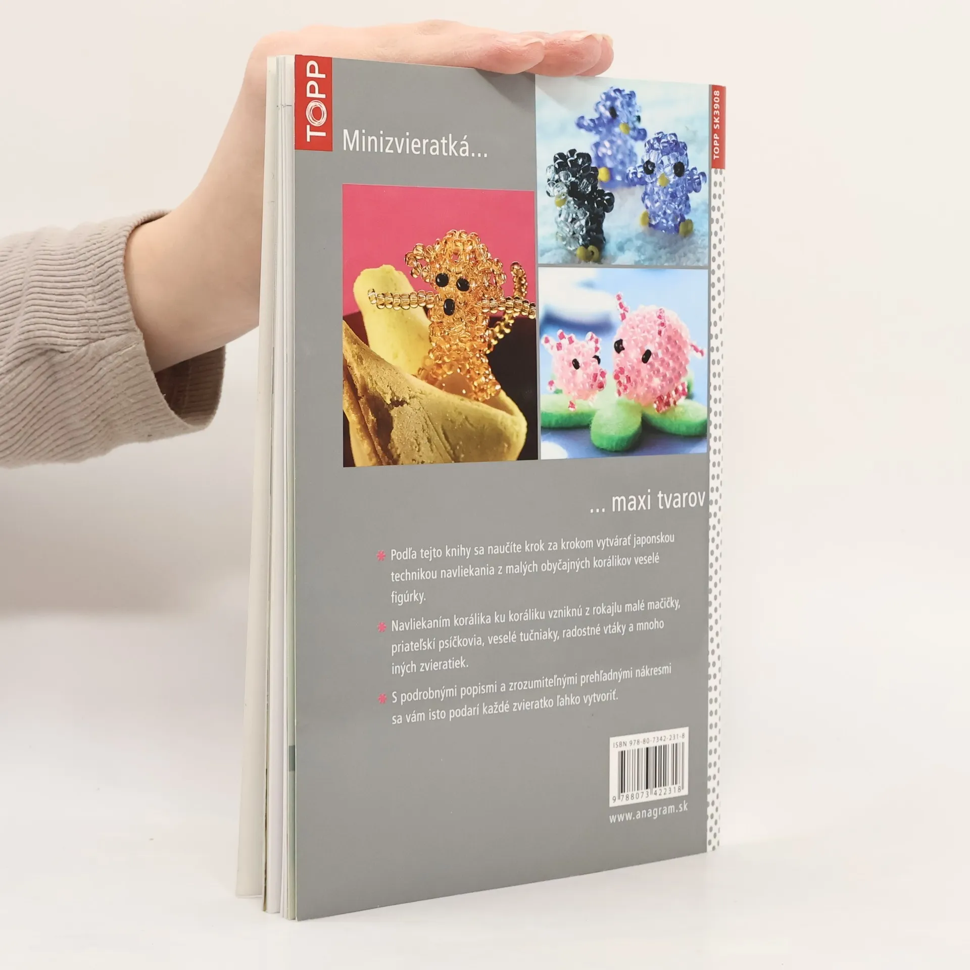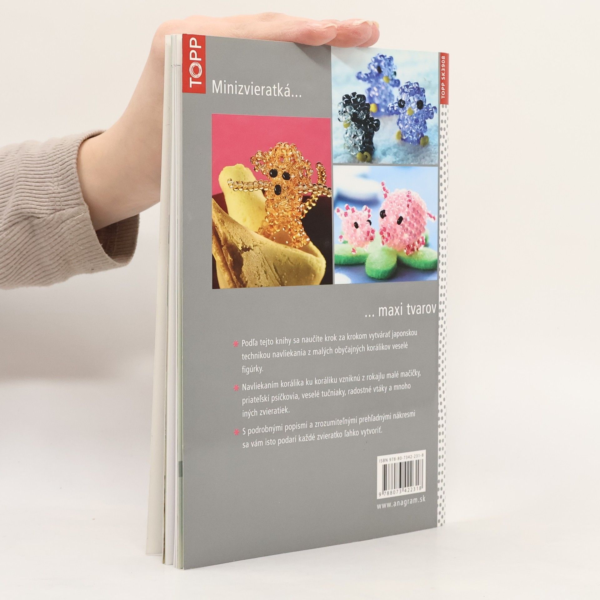 Podle této knížky se naučíte krok za krokem vytvářet japonskou technikou navlékání z malých rokajlových korálků veselé figurky. Navlékáním korálku za korálkem vzniknou malé kočičky, hraví pejsci, veselí tučňáci, štěbetaví ptáčci a mnoho dalších zvířátek. S podrobnými popisy a snadno srozumitelnými přehlednými barevnými nákresy se vám jistě podaří každé zvířátko snadno vytvořit.