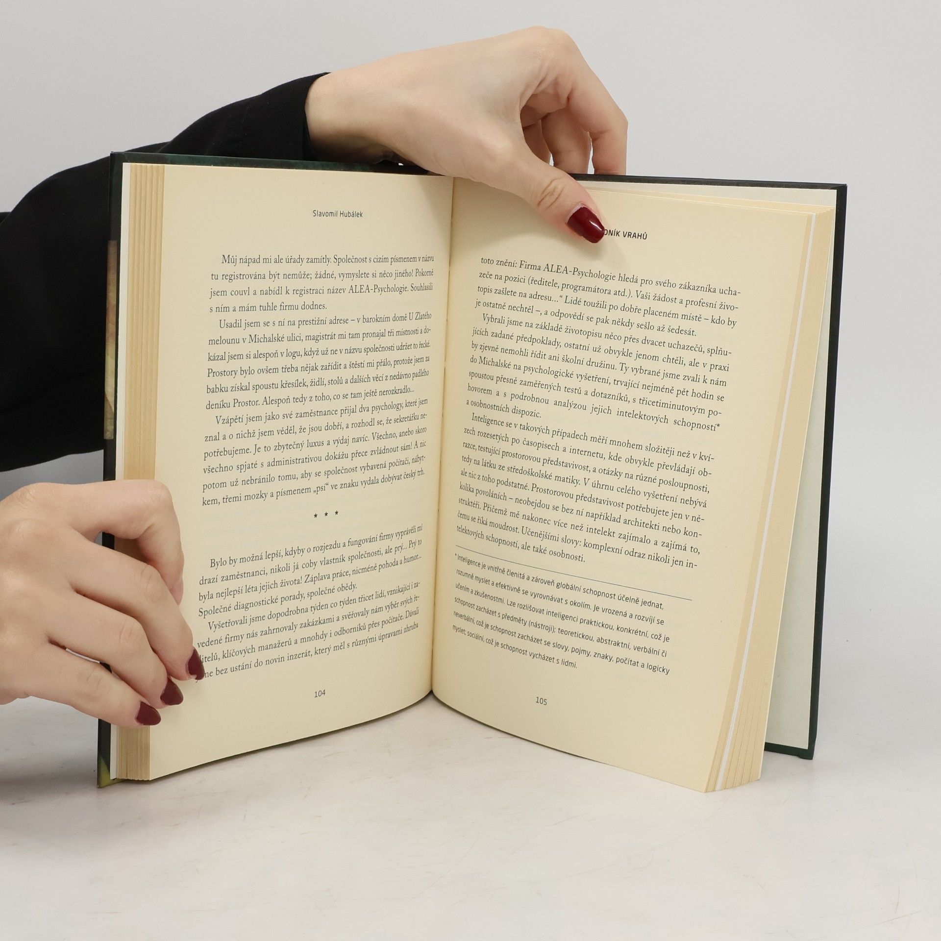 Když kriminálka dopadne na vraha, obvykle si vyžádá posudek psychologa a psychiatra, aby prozkoumali jeho duši, osobnost a příčetnost v době činu. Dr. Slavomil Hubálek, známý znalec, ve své knize sdílí příběhy vražd a psychologické portréty vrahů, které vyšetřoval. Popisuje, jak obhajuje své posudky před soudem, i když se často setkává s ostrou kritikou obhájců. Zmiňuje i zločiny spáchané lidmi s minimální příčetností, které vedly k veřejnému tlaku na nejvyšší tresty. Příběhy zločinů jsou zasazeny do Hubálkova pestrého života, zahrnujícího úspěchy i neúspěchy, otázky charakteru a korupce, práci v psychiatrické léčebně a psychologické testování uchazečů o prestižní pozice. Napínavý moment nastává, když se neznámí pachatelé vloupají do jeho kanceláře, aby získali důkazy o případu spojeném s mezinárodním skandálem. Kniha tak nabývá ráz špionážního románu. Předmluvu napsal známý státní zástupce Miroslav Antl a doslov kriminalista Josef Mareš. V obrazové příloze je zachyceno Hubálkovo životní putování a jeho setkání s významnými osobnostmi.