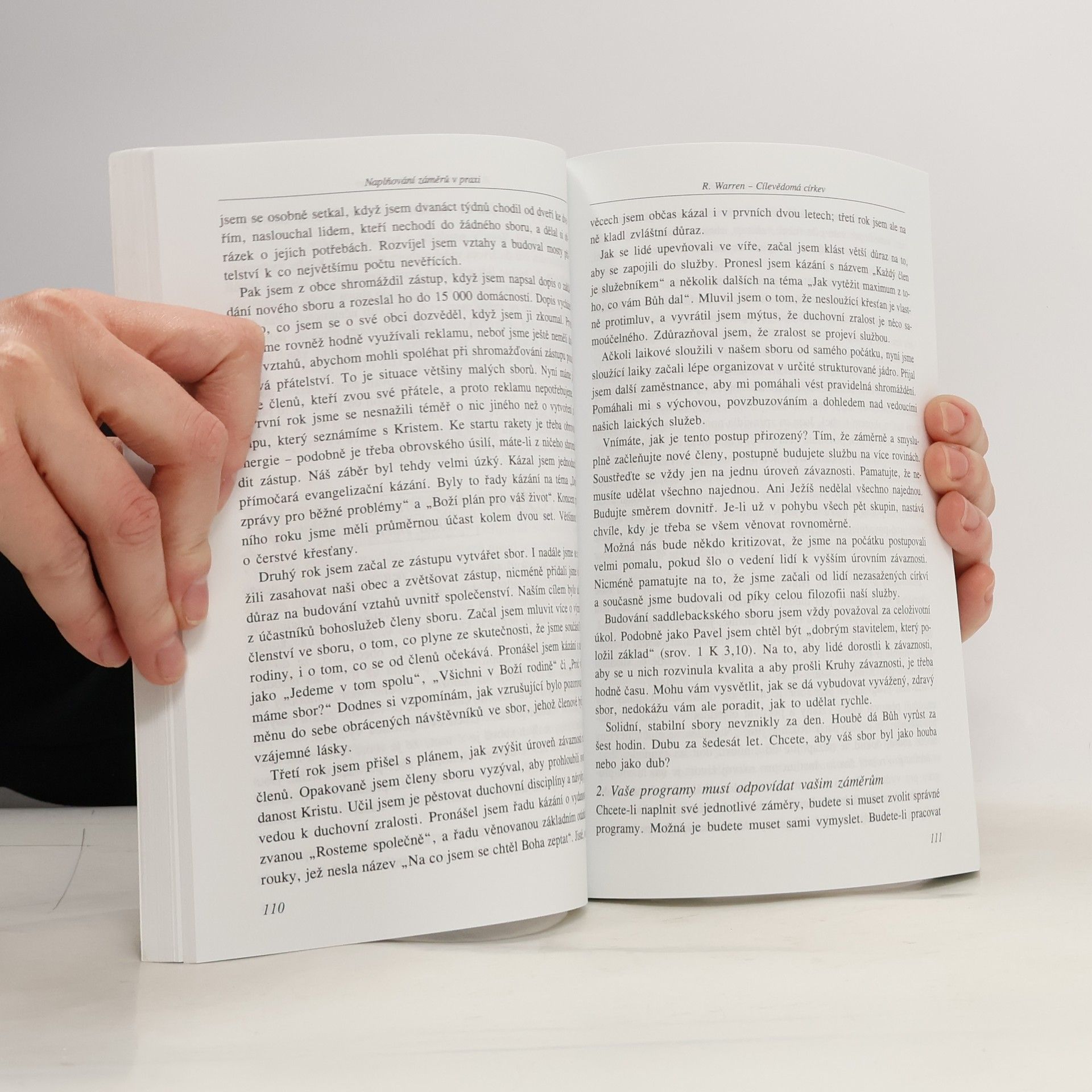 Kniha je určena každému, kdo by rád pomohl svému sboru při budování dobrých základů a růstu. Prostřednictvím několika jednoduchých principů, které autor představuje na modelových situacích, se můžeme seznámit s tím jak: budovat sbor určovaný Božími záměry; položit zdravé základy sboru; vytyčit správné cíle, sdílet je s druhými a naplňovat je v reálném životě; zasáhnout dobrou zprávou okolí sboru; vést lidi k osobní zodpovědnosti, duchovní zralosti a službě druhým. Tato ojedinělá práce je cenná zejména tím, že vychází z autorovy mnohaleté zkušenosti práce pastora v Saddlebacku v jižní Kalifornii