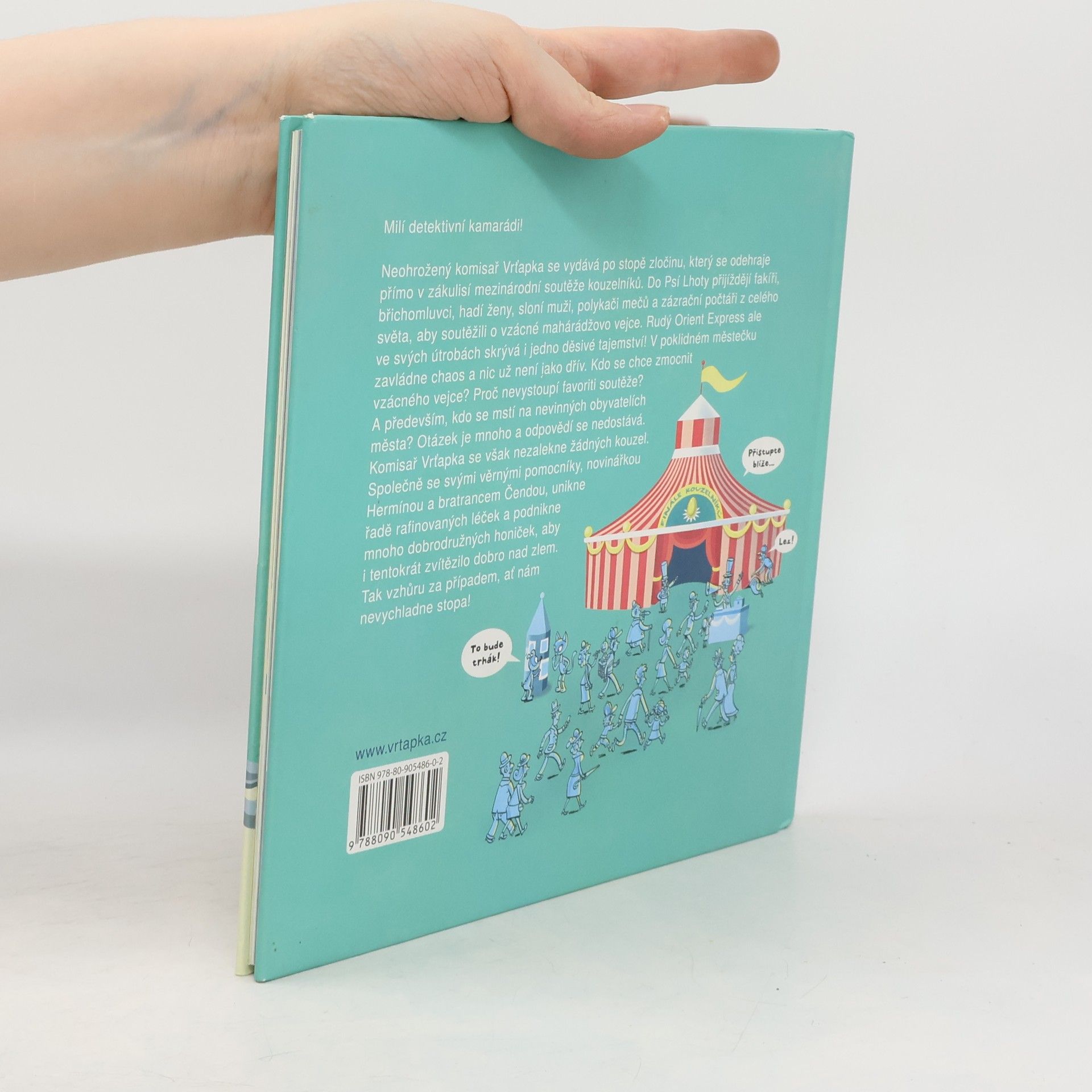 Neohrožený komisař Vrťapka se vydává po stopě zločinu, který se stane přímo v zákulisí mezinárodní soutěže kouzelníků! Do Psí Lhoty přijíždějí fakíři, břichomluvci, hadí ženy, sloní muži, polykači mečů a zázrační počtáři z celého světa, aby soutěžili o vzácné mahárádžovo vejce. Rudý Orient Express ale ve svých útrobách skrývá i jedno děsivé tajemství! V poklidném městečku zavládne chaos a nic už není jako dřív. Kdo se chce zmocnit vzácného vejce? Proč nevystoupí favoriti soutěže? A především, kdo se mstí na nevinných obyvatelích města? Otázek je mnoho a odpovědí se nedostává. Komisař Vrťapka se však nezalekne žádných kouzel. Společně se svými věrnými pomocníky, novinářkou Hermínou a bratrancem Čendou, unikne řadě rafinovaných léček a podnikne mnoho dobrodružných honiček, aby i tentokrát zvítězilo dobro nad zlem. Tak vzhůru za případem, ať nám nevychladne stopa!