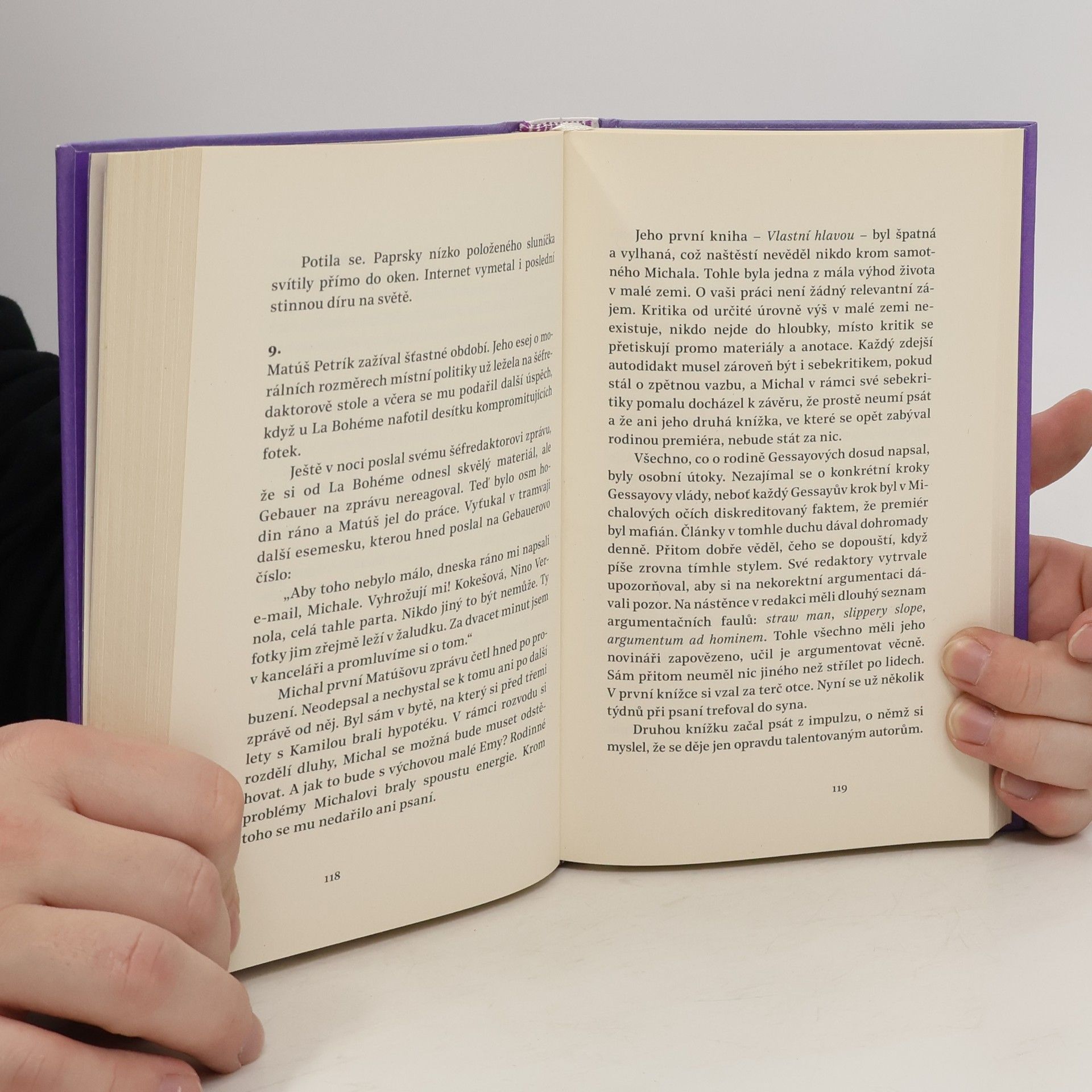 Nejnovější próza Davida Zábranského vypráví příběh o politice v postkomunistické zemi bez tradice státnosti a demokracie, příběh o předávání moci ve státě, který je tak malý, že příslušníci elity se v podstatě znají navzájem. Jaký étos může mít republika, jejíž premiér vypadá jako zloděj vajec v obleku a za svoji poradkyni vydává milenku italského mafiána? Kniha, inspirovaná vraždou mladého slovenského novináře Jána Kuciaka, zachycuje události, které činu mohly předcházet, jakož i následný šok a proměnu společenské nálady v zemi. Cílem přitom nebylo nabídnout kroniku nedávného dění na Slovensku, nýbrž na základě konfliktu tří generací vytvořit obecnou výpověď o dnešní politice a společnosti. Podstatnou součástí vyprávění je snaha odpovědět na otázky, co pro region střední a východní Evropy znamenal rok 1989 a co tento region znamená pro současný svět.