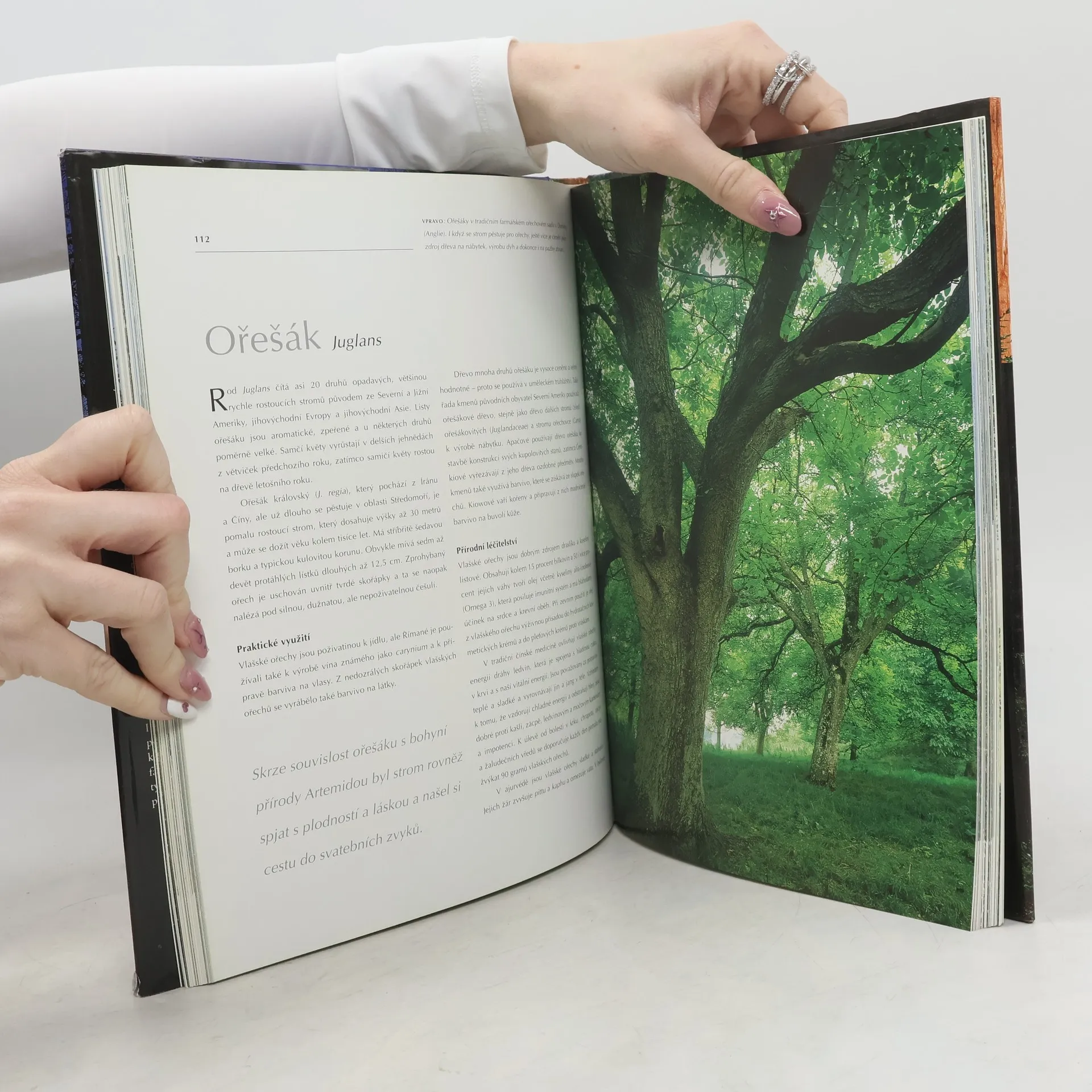 Stromy a člověk patří k sobě odjakživa, poskytují útočiště, chrání před horkem a zásobují jedlými plody. Dávají dřevo na nástroje, zbraně, hračky a stavby, a jejich palivo pohání civilizaci. Mají také význam v lidové tradici, kde naši předkové uctívali přírodní síly a vnímali se jako součást přírody. Mohutný strom s pevnými kořeny symbolizuje stabilitu a je často vyobrazen jako Strom života, což je koncept sahající až do paleolitu a přítomný ve filozofii starověkých kultur, jako byly Egypt, Persie a Řecko, i v kmenových společenstvích blízkých přírodě. Duchovní povaha stromů ovlivňuje lidi a krajinu. Na každém kontinentu byly určité druhy chráněny jako posvátné, což souviselo s jejich vlastnostmi a duchovními ideály dané kultury. Například Sumerové uctívali cedr libanonský, v prehistorické Persii platan a na Sibiři břízu. Posvátný status těchto stromů měl ekologické důsledky, protože byly chráněny. I v moderní době si lidé uvědomují, že příroda je víc než jen zdroj surovin či kulisa pro rekreaci. Tato publikace přibližuje fascinující svět mýtů, pověr a lidové tradice, v níž se často projevuje hluboká moudrost.
