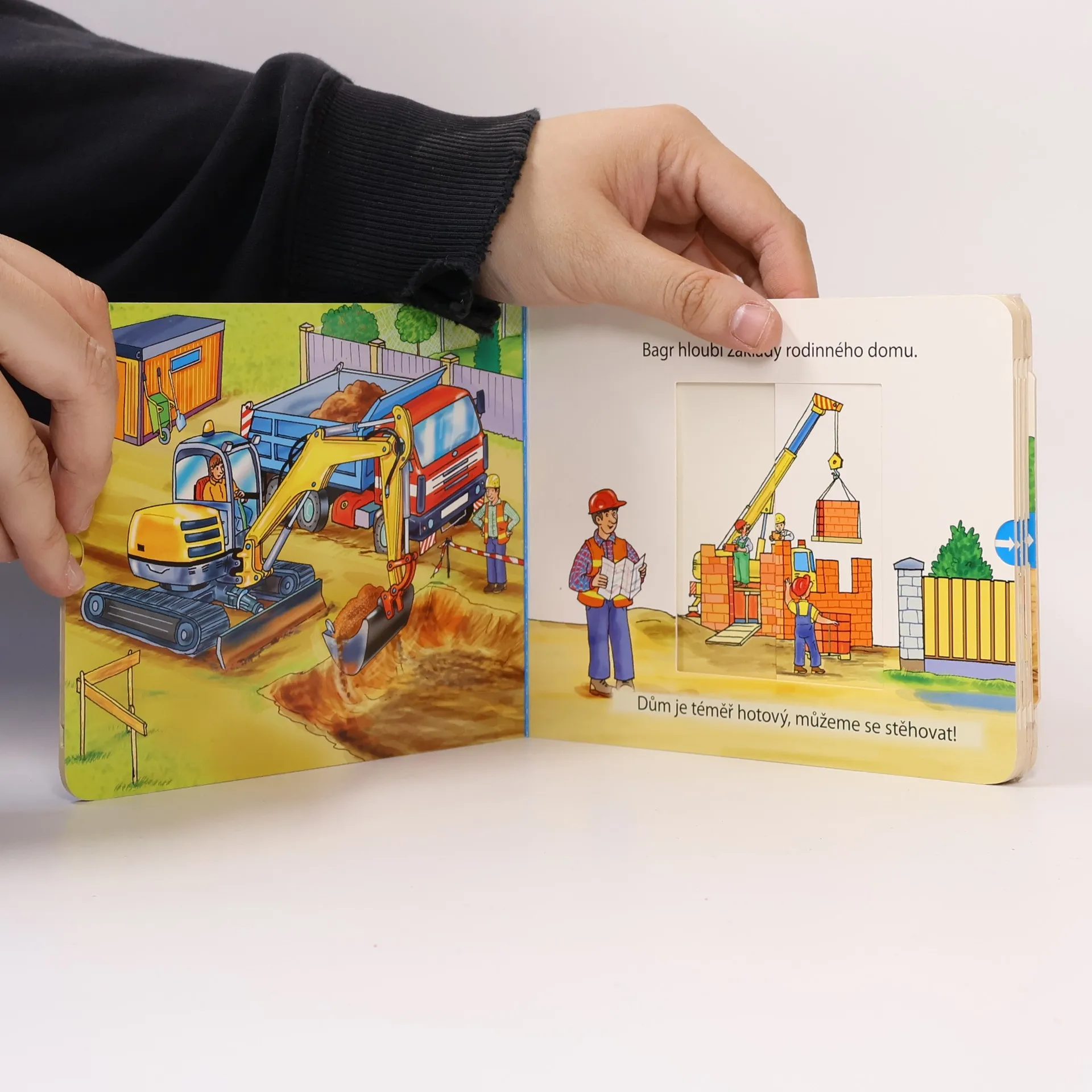 Vydejte se s dělníky na stavbu a zjistíte, jak náročnou mají práci. Posunutím okénka uvidíte, jak se staví domy, chodníky nebo cesty.