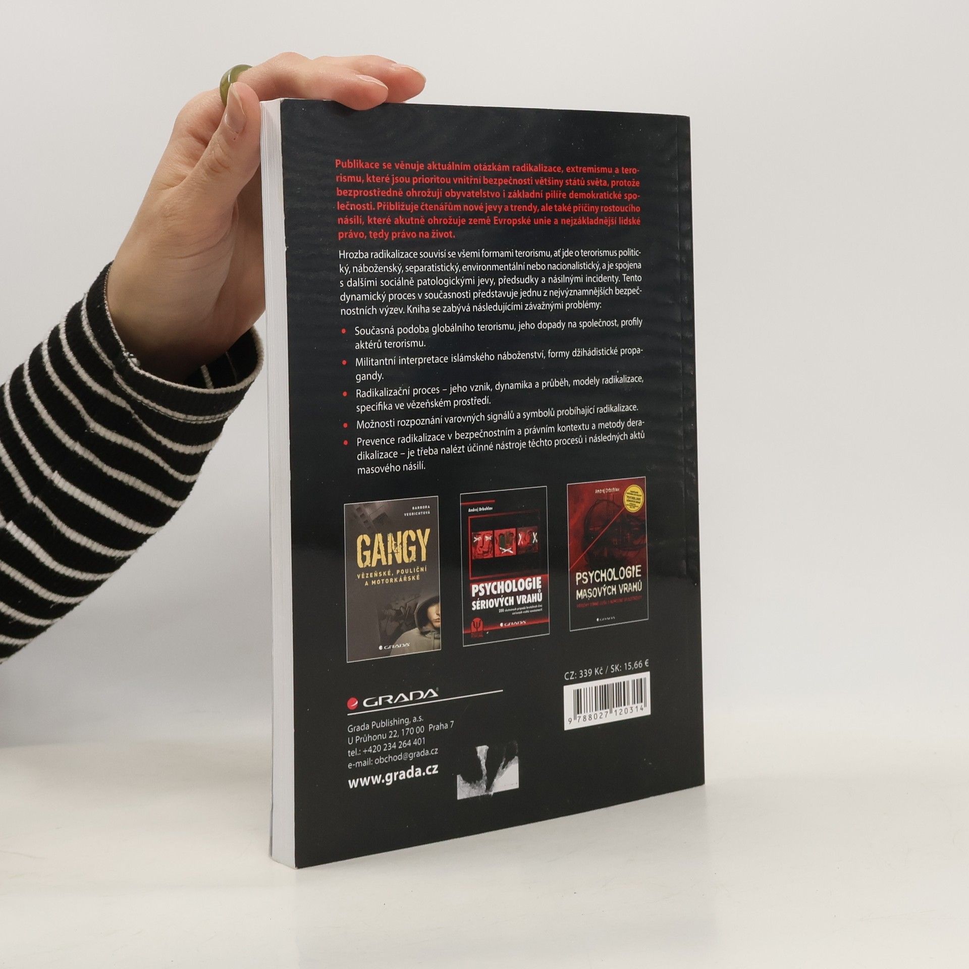Publikace se věnuje aktuálním otázkám radikalizace, extremismu a terorismu, které jsou prioritou vnitřní bezpečnosti většiny států světa, protože bezprostředně ohrožují obyvatelstvo i základní pilíře demokratické společnosti. Přibližuje čtenářům nové jevy a trendy, ale také příčiny rostoucího násilí, které akutně ohrožuje země Evropské unie a nejzákladnější lidské právo, tedy právo na život. Hrozba radikalizace souvisí se všemi formami terorismu, ať jde o terorismus politický, náboženský, separatistický, environmentální nebo nacionalistický, a je spojena s dalšími sociálně patologickými jevy, předsudky a násilnými incidenty. Tento dynamický proces v současnosti představuje jednu z nejvýznamnějších bezpečnostních výzev. Kniha se zabývá následujícími závažnými problémy: • Současná podoba globálního terorismu, jeho dopady na společnost, profily aktérů terorismu. • Militantní interpretace islámského náboženství, formy džihádistické propagandy. • Radikalizační proces – jeho vznik, dynamika a průběh, modely radikalizace, specifika ve vězeňském prostředí. • Možnosti rozpoznání varovných signálů a symbolů probíhající radikalizace. • Prevence radikalizace v bezpečnostním a právním kontextu a metody deradikalizace – je třeba nalézt účinné nástroje těchto procesů i následných aktů masového násilí.