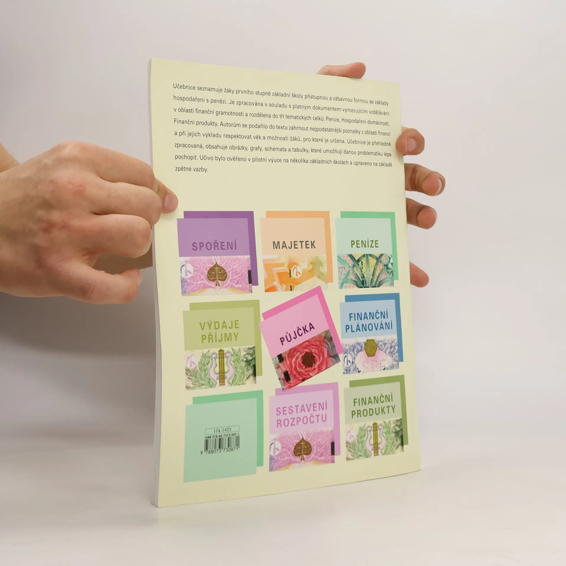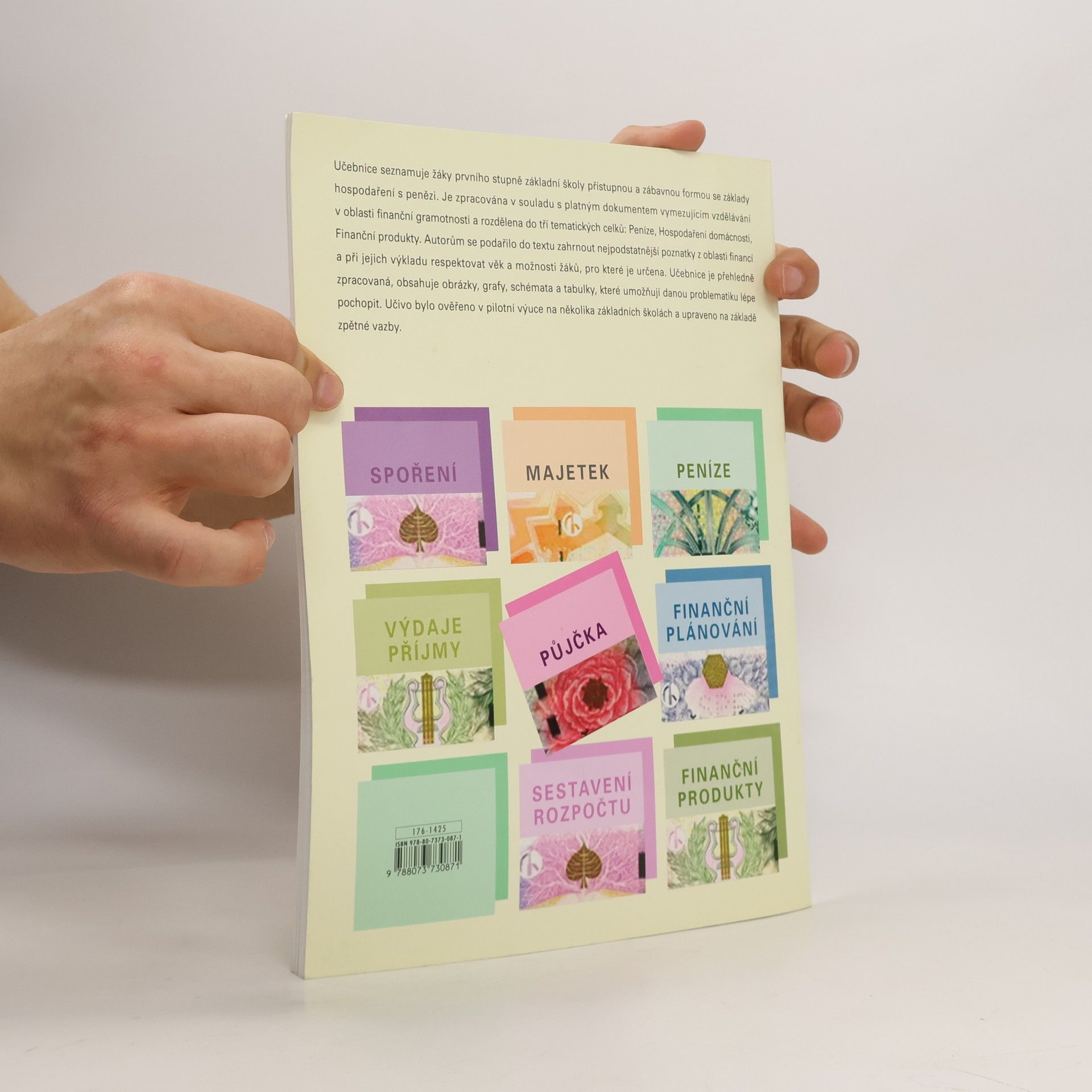 Učebnice seznamuje žáky 1. stupně ZŠ přístupnou a zábavnou formou se základy hospodaření s penězi. Je zpracována v souladu s platným dokumentem vymezujícím vzdělávání v oblasti finanční gramotnosti. Učivo je rozděleno do tří tematických celků: Peníze, Hospodaření domácnosti, Finanční produkty. Do učebnice se podařilo zahrnout nejpodstatnější poznatky z finanční oblasti a přitom respektovat věk a možnosti žáků 1. stupně. Učebnice je přehledně zpracovaná, obsahuje obrázky, grafy, schémata a tabulky, které umožňují danou problematiku lépe pochopit. Učivo bylo ověřeno v pilotní výuce na několika základních školách a upraveno na základě zpětné vazby.