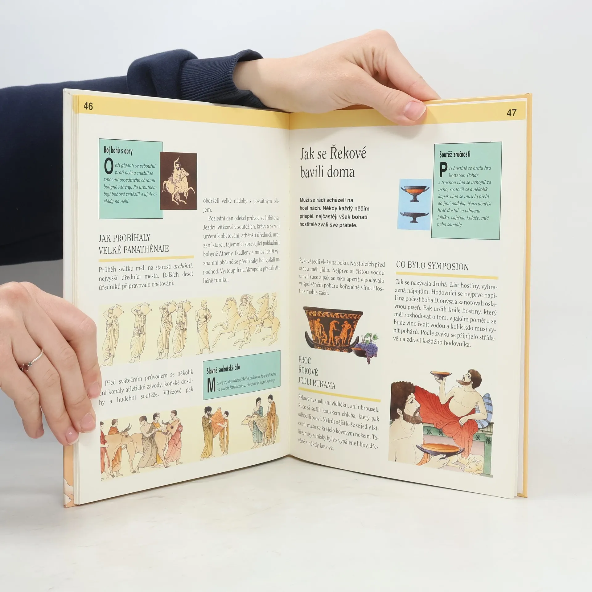 Uměleckonaučná kniha z produkce pařížského nakladatelství Nathan. Ve srozumitelně napsaném textu seznamuje s životem ve starověkém Řecku. Popisuje jak probíhaly olympijské hry a jaké byly pro vítěze odměny, s čím si hrály malé řecké děti a jestli byla škola přísná, co Řekové jedli a jak chodili nakupovat.