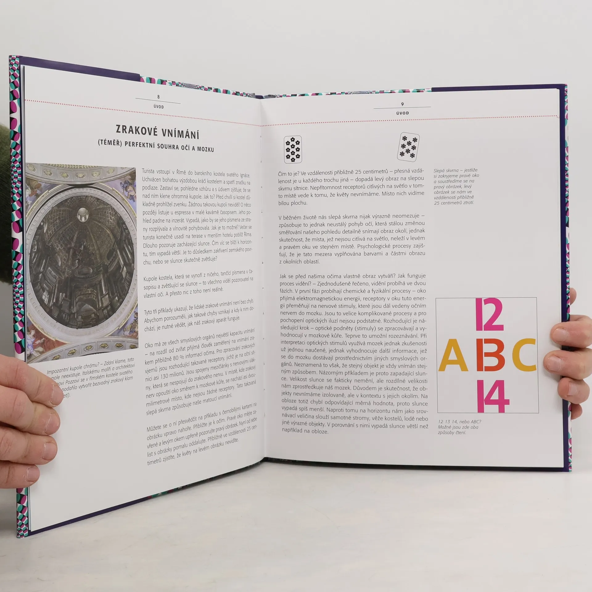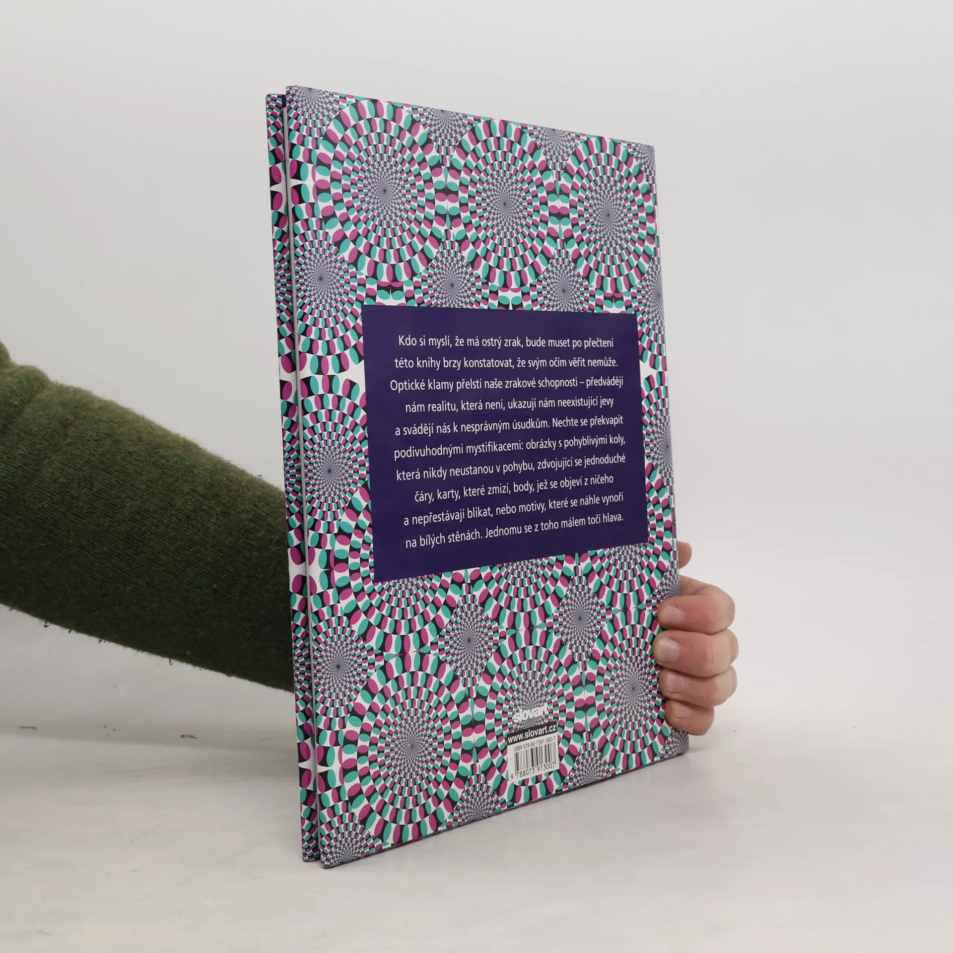 Kdo si myslí, že má ostrý zrak, bude muset po přečtení této knihy brzo konstatovat, že svým očím věřit nemůže. Optické klamy přelstí naše zrakové schopnosti - předvádějí nám realitu, která není, ukazují nám neexistující jevy a svádějí nás k nesprávným úsudkům. Nechte se překvapit podivuhodnými mystifikacemi: obrázky s pohyblivými koly, která nikdy neustanou v pohybu, zdvojující se jednoduché čáry, karty, které zmizí, body, jež se objeví z ničeho a nepřestávají blikat, nebo motivy, které se náhle vynoří na bílých stěnách. Jednomu se z toho málem točí hlava.