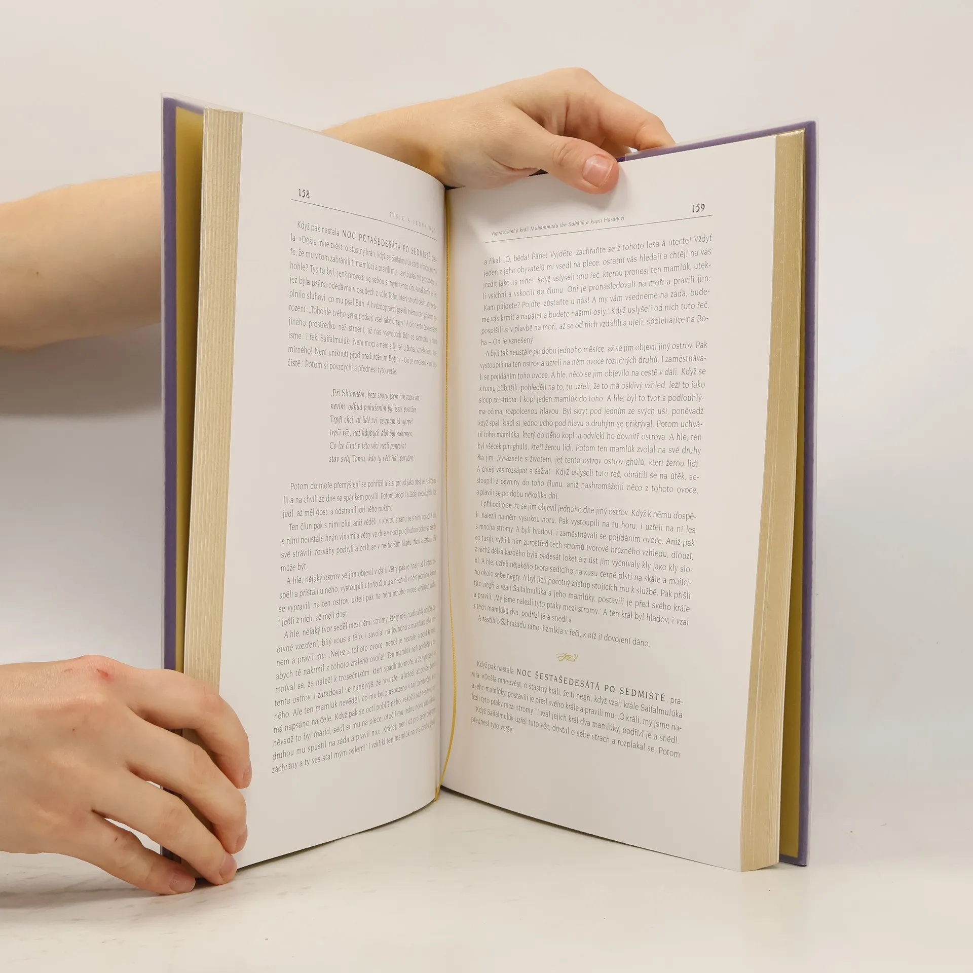 6. kniha z osmi. Sbírka Tisíce a jedné noci se stala součástí zlatého fondu světové literatury. Toto výjimečné dílo inspirovalo přední světové literáty a mělo velký vliv na evropskou uměleckou tvorbu. Od vydání prvního překladu do evropského jazyka uplynulo již 300 let! Ojedinělé dílo vzbuzuje dodnes pozornost bohatstvím a důmyslností příběhů, exotickým koloritem, vtipem a kresbou nevšedního prostředí, znaky, které jim vtiskli vypravěči, aby stejně jako Šahrazád zaujali posluchače. Výběr námětů je široký, od krátkých anekdot po legendy, které prostým posluchačům dávaly naději, že na každého někde čeká bohatství a štěstí. Toto je luxusní, plně ilustrované, v hedvábí vázané vydání se zlatou ořízkou v uznávaném překladu prof. Felixe Tauera, s bohatým poznámkovým aparátem. http://1000ajednanoc.cz/