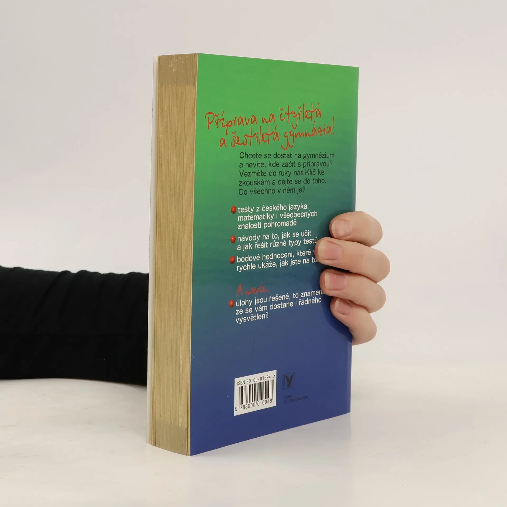 Jedna z mála publikací, které nabízejí zkušební testy z matematiky, češtiny a obecného přehledu. Žák si může vyzkoušet své znalosti ze všech předmětů, díky bodovému hodnocení může zjistit i úroveň svých znalostí a případné mezery k doplnění. A protože každá škola si vytváří přijímací testy trochu jinak, může si žák vyzkoušet i různé typy otázek. Za každým testem pak najde řešení všech otázek s odůvodněním.