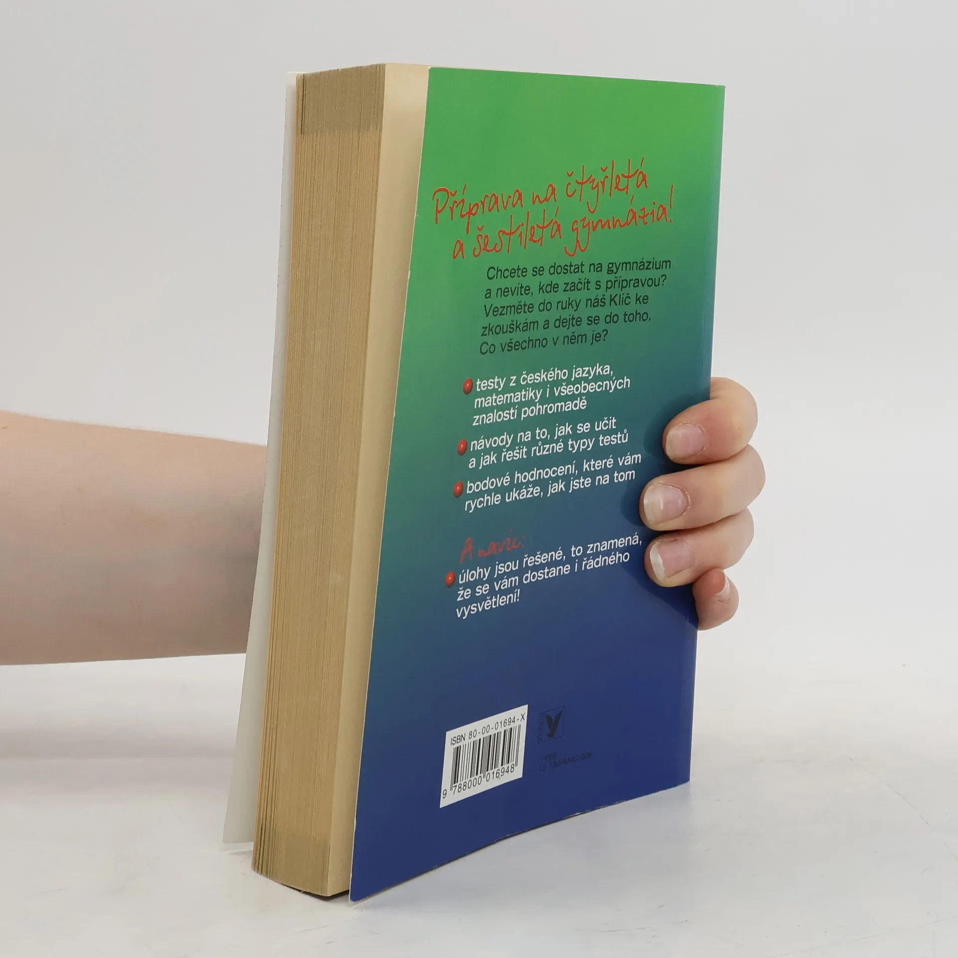 Jedna z mála publikací, které nabízejí zkušební testy z matematiky, češtiny a obecného přehledu. Žák si může vyzkoušet své znalosti ze všech předmětů, díky bodovému hodnocení může zjistit i úroveň svých znalostí a případné mezery k doplnění. A protože každá škola si vytváří přijímací testy trochu jinak, může si žák vyzkoušet i různé typy otázek. Za každým testem pak najde řešení všech otázek s odůvodněním.