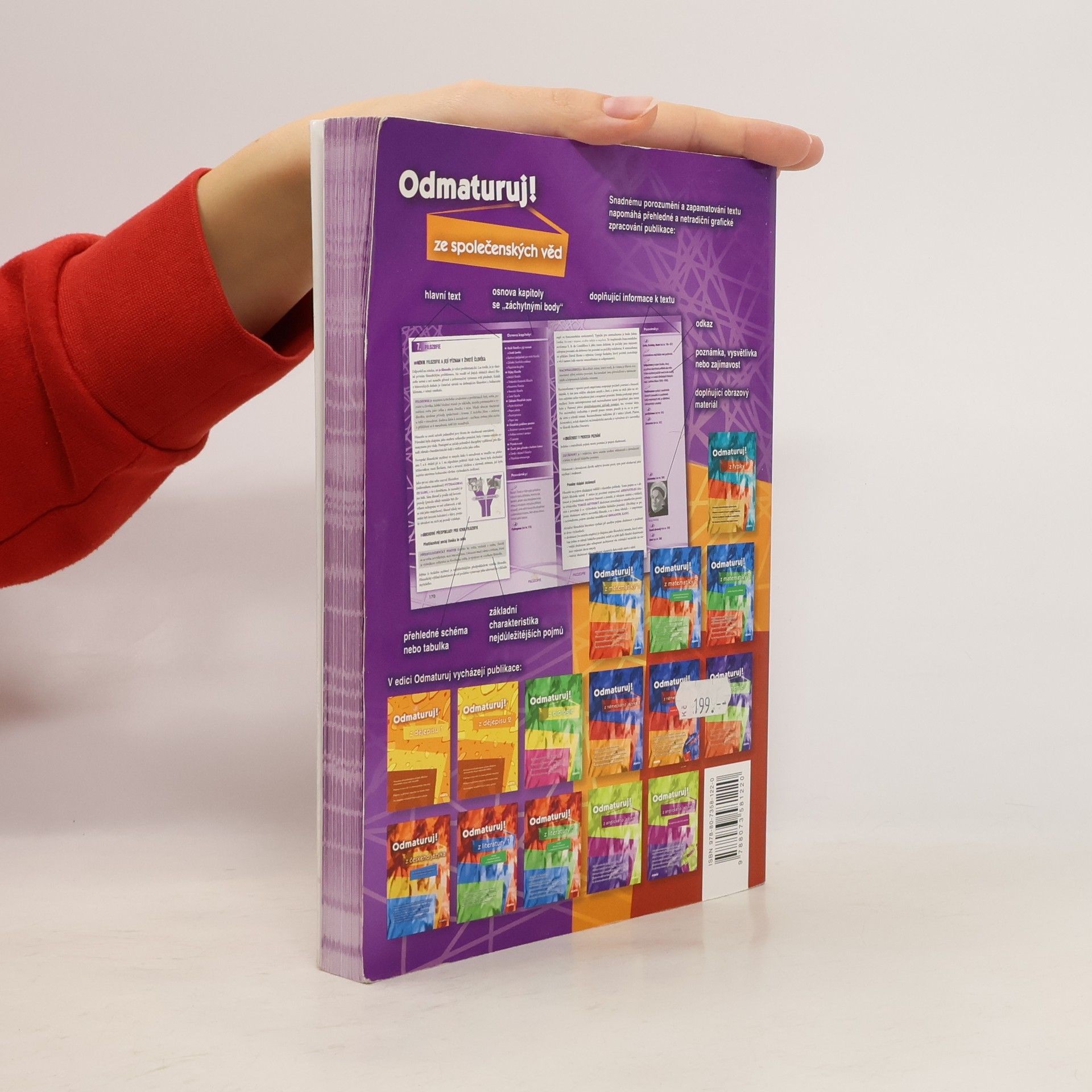 Politologie, právo, mezinárodní vztahy, ekonomie, sociologie, psychologie, filozofie, etika, logika a teorie vědy, náboženství. Aktualizovaná učebnice určena k přípravě na maturitu (podle požadavků nové maturity) a k přijímacím zkouškám na vysoké školy. Publikace byla zpracována v souladu s požadavky MŠMT na reformu středoškolského vzdělávání a podobu a obsah nové celostátní maturity. Kniha je přehledně zpracována do 10 celků dle vědních disciplin, které jsou dále členěny na menší podkapitoly. Snadnou orientaci v textu podporuje grafické odlišení ústředního textu od doplňujících poznámek. Text je doplněn mnoha zajímavostmi, odkazy, přehlednými tabulkami a názornými schématy.