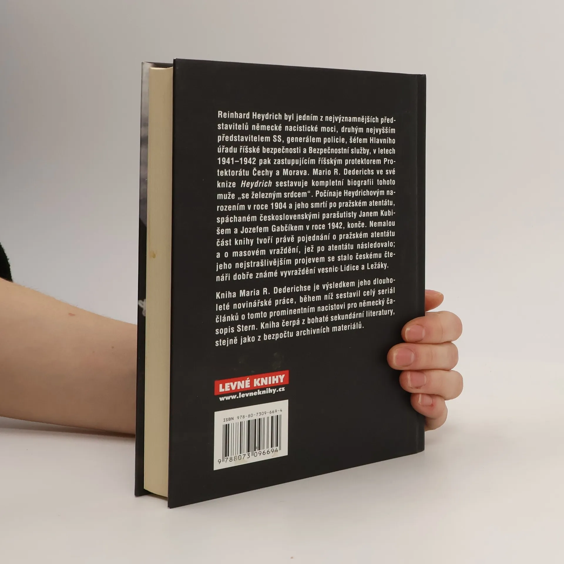 Mario Dederichs ve své knize Heydrich sestavuje kompletní biografii tohoto muže ''se železným srdcem''. Počínaje Heydrichovým narozením v roce 1904 a jeho smrtí po pražském atentátu, spáchaném československými parašutisty Janem Kubišem a Jozefem Gabčíkem v roce 1942., konče. Nemalou část knihy tvoří právě pojednání o pražském atentátu a o masovém vraždění, jež po atentátu následovalo; jeho nejstrašlivějším projevem bylo vyvraždění vesnic Lidice a Ležáky...