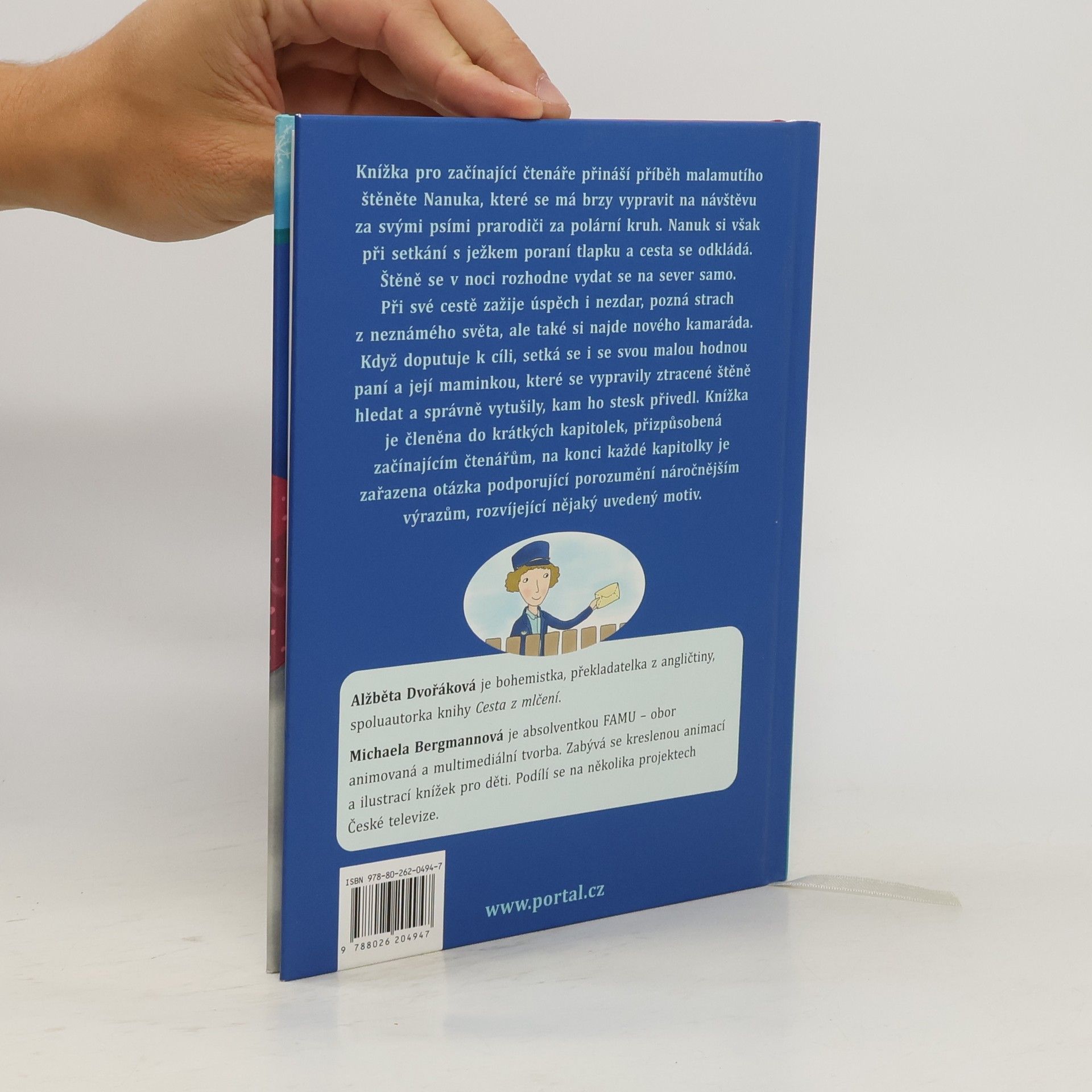 Podtitul: První čtení, to nic není / Knížka pro začínající čtenáře přináší příběh malamutího štěněte Nanuka, které se má brzy vypravit na návštěvu za svými psími prarodiči za polární kruh. Nanuk si však při setkání s ježkem poraní tlapku a cesta se odkládá. Štěně se však v noci rozhodne vypravit se na sever samo. Při své cestě zažije úspěch i nezdar, pozná strach z neznámého světa, ale také si najde nového kamaráda. Když doputuje k cíli, setká se i se svou malou hodnou paní a její maminkou, které se vypravily ztracené štěně hledat a správně vytušily, kam ho stesk přivedl. Knížka je členěna do krátkých kapitolek, přizpůsobená začínajícím čtenářům, na konci každé kapitolky jsou zařazeny otázky, motivující k porozumění náročnějším výrazům, rozvíjející nějaký uvedený motiv… Alžběta Dvořáková je bohemistka, překladatelka z angličtiny, spoluautorka knihy Cesta z mlčení.