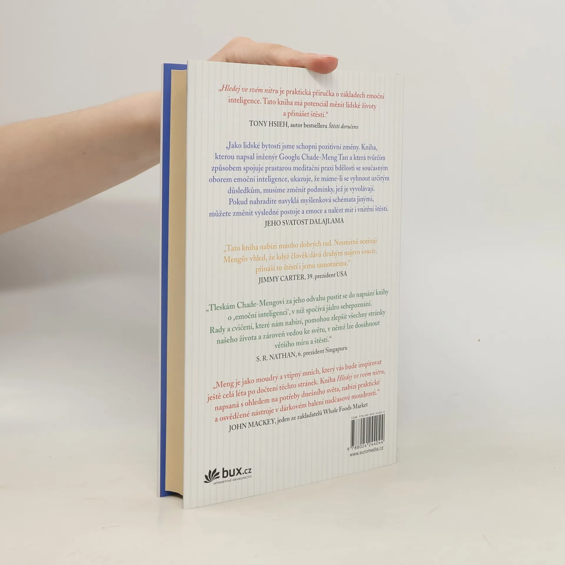 Chade-Meng Tan, jeden z prvních inženýrů firmy Google, ve svém díle Hledej ve svém nitru spojil prastarou praxi meditace bdělosti s moderním oborem emoční inteligence. Jeho zábavná a přínosná kniha je napsána jasně a srozumitelně. Cílem souboru cvičení a nástrojů, které Meng čtenáři postupně nabízí, je nejen umocnění osobního štěstí, ale i dosažení vyššího pracovního výkonu a zlepšení vztahů v osobním i profesním životě. Vážnost tématu zlehčují milé ilustrace a osobitý humor autora.
