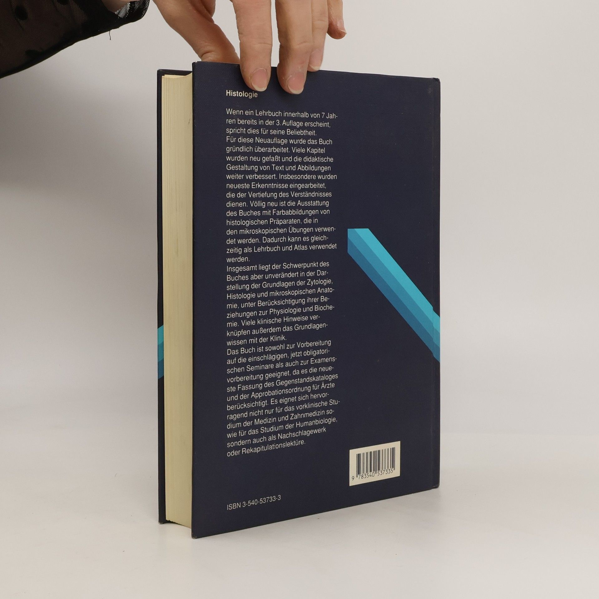 Drei Auflagen innerhalb von sieben Jahren - diese Tatsache allein spricht schon für die Beliebtheit der Histologie . Die Neuauflage ist gründlich überarbeitet und in weiten Teilen neu gefaßt. Natürlich sind vor allem die neuesten Erkenntnisse eingearbeitet, die insbesondere der Vertiefung des Verständnisses dienen. Völlig neu an der Ausstattung des Buches sind Farbabbildungen von histologischen Präparaten, die in den mikroskopischen Übungen gezeigt werden. Dadurch kann es gleichzeitig als Lehrbuch und Atlas verwendet werden. Insgesamt liegt der Schwerpunkt des Buches unverändert in der Darstellung der Grundlagen der Zytologie, Histo- logie und mikroskopischen Anatomie sowie ihrer Beziehungen zur Physiologie und Biochemie. Dadurch wird umfassend und fächerübergreifend Wissen vermittelt. Viele klinische Hinweise verknüpfen außerdem das Grundlagenwissen mit der praktischen Anwendung in der Klinik. Dadurch ist das Buch hervorragend zur Vorbereitung auf die einschlägigen, obligatorischen Seminare geeignet. Es kann nicht nur im vorklinischen Studium verwendet werden, sondern auch zum Wiederholen oder Nachschlagen.