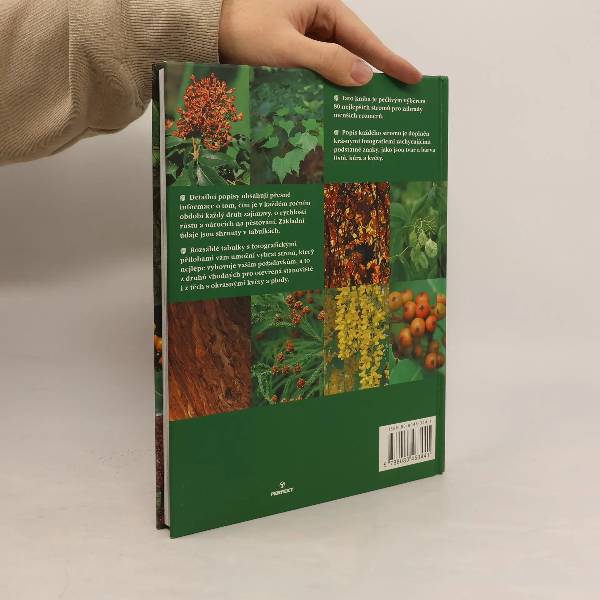 Fotografická publikace obsahuje výběr okrasných stromů vhodných k osázení zahrad menších rozměrů, uvádí nároky na pěstování včetně rychlosti růstu a maximální velikosti.