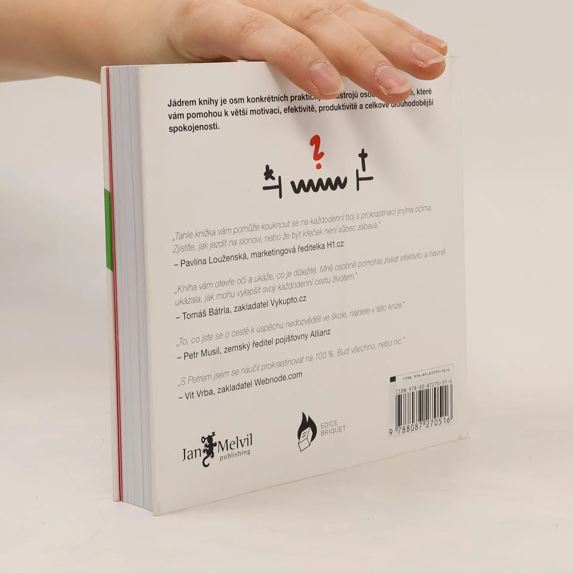 Jak přestat odkládat a začít žít naplno. Znáte ten pocit, když se vám nechce začít dělat na nějakém úkolu? Stává se vám, že odkládáte i věci, které opravdu dělat chcete? Snažíte si sami sobě poručit, ale neposlechnete se? Petr Ludwig v původní české publikaci opírající se o poslední vědecké výzkumy světových univerzit z oblasti lidského rozhodování, motivace a produktivity přináší odpověď na otázku, kterou si klade každý z nás: Jak z toho ven? Jak být produktivnější bez větší únavy? Jak začít využívat náš čas efektivněji? Jak prožít každý den naplno? Říman Seneca ve svém slavném citátu řekl: „Zatímco ztrácíme svůj čas váháním a odkládáním, život utíká.” Tato kniha vám pomůže s váháním a odkládáním dlouhodobě bojovat a zlepší vaši schopnost využívat čas smysluplněji. Jádrem knihy je osm praktických nástrojů osobního rozvoje, které vám pomohou nad prokrastinací vyhrávat každý den.