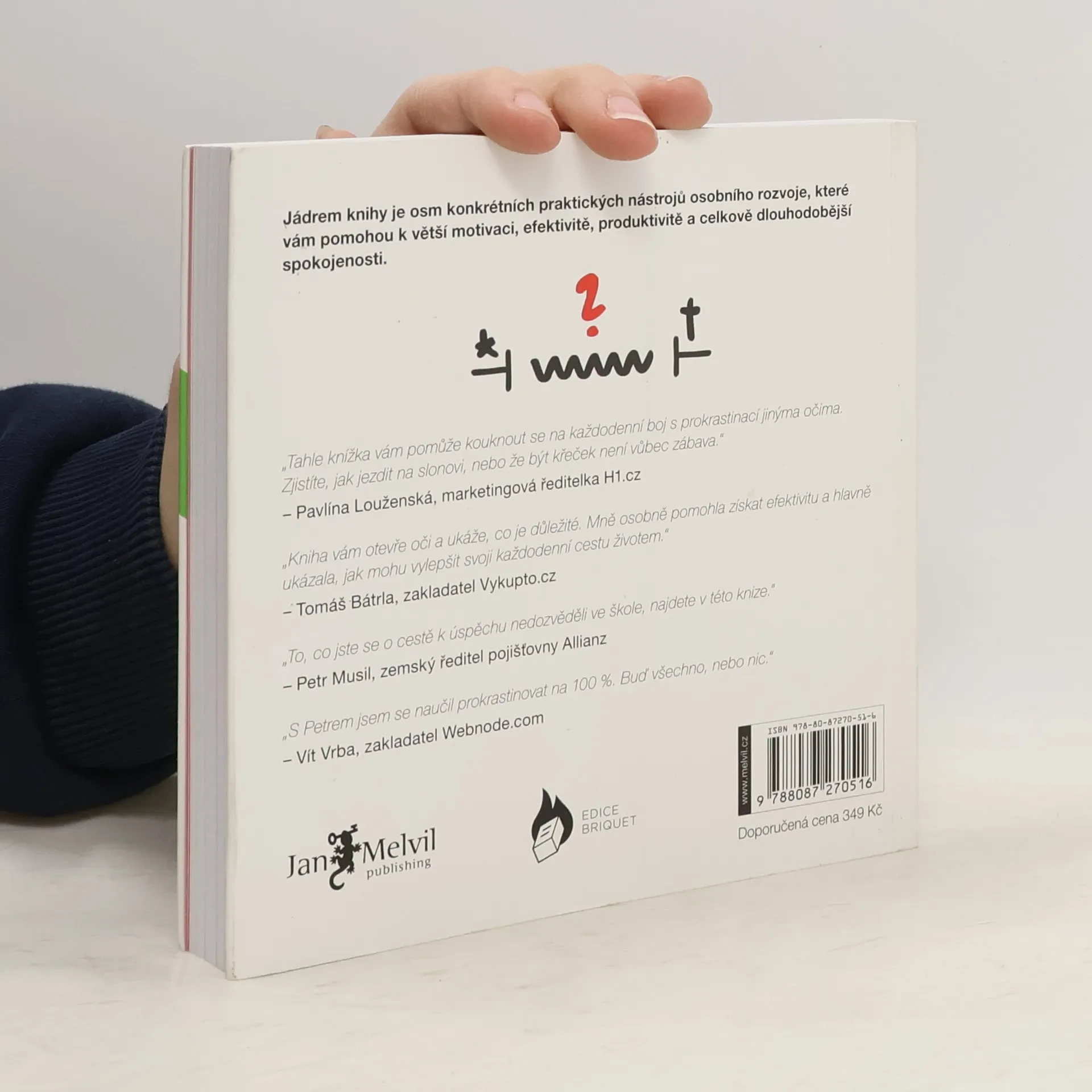 Jak přestat odkládat a začít žít naplno. Znáte ten pocit, když se vám nechce začít dělat na nějakém úkolu? Stává se vám, že odkládáte i věci, které opravdu dělat chcete? Snažíte si sami sobě poručit, ale neposlechnete se? Petr Ludwig v původní české publikaci opírající se o poslední vědecké výzkumy světových univerzit z oblasti lidského rozhodování, motivace a produktivity přináší odpověď na otázku, kterou si klade každý z nás: Jak z toho ven? Jak být produktivnější bez větší únavy? Jak začít využívat náš čas efektivněji? Jak prožít každý den naplno? Říman Seneca ve svém slavném citátu řekl: „Zatímco ztrácíme svůj čas váháním a odkládáním, život utíká.” Tato kniha vám pomůže s váháním a odkládáním dlouhodobě bojovat a zlepší vaši schopnost využívat čas smysluplněji. Jádrem knihy je osm praktických nástrojů osobního rozvoje, které vám pomohou nad prokrastinací vyhrávat každý den.
