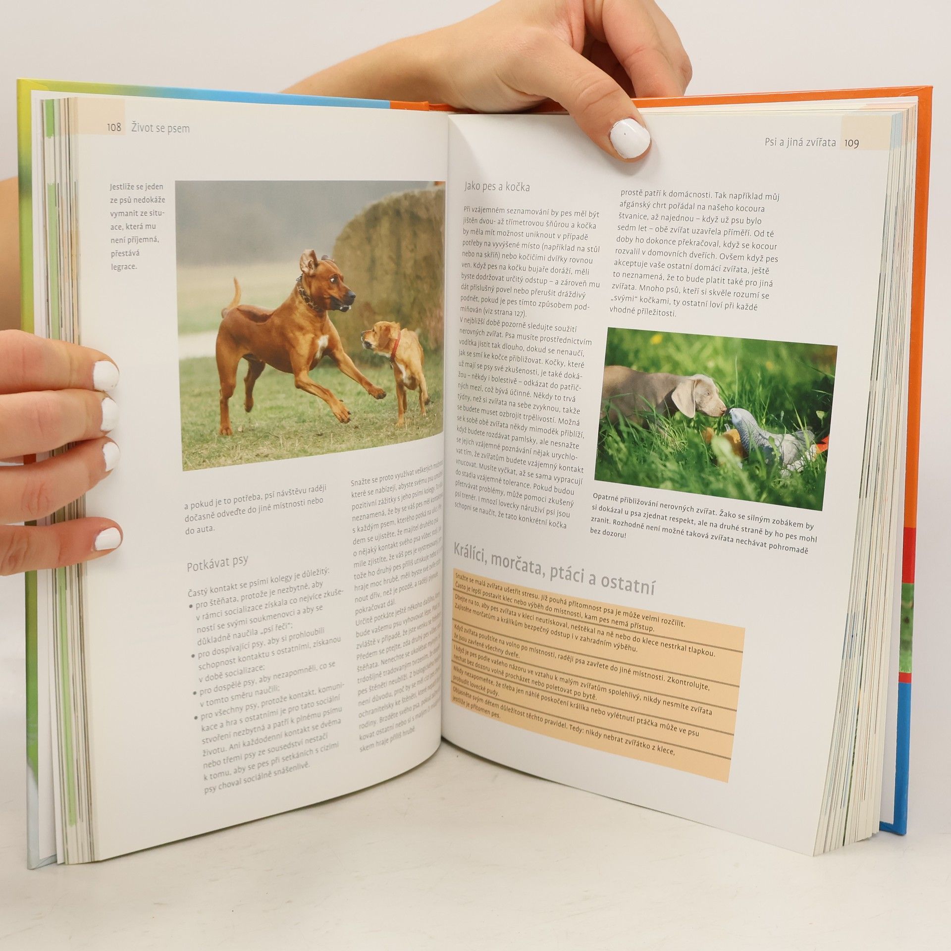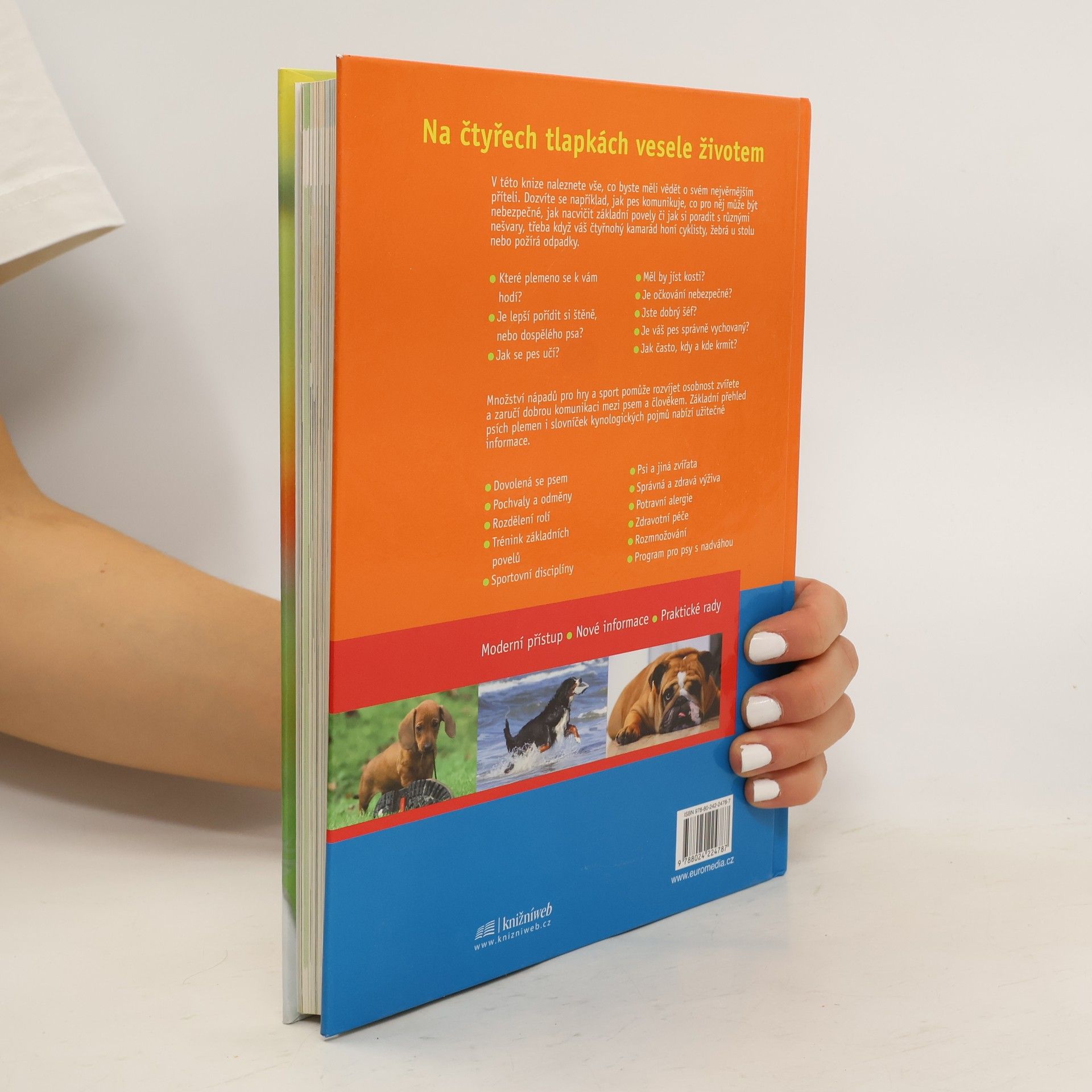 Na čtyřech tlapkách vesele životem V této knize naleznete vše, co byste měli vědět o svém nejvěrnějším příteli. Dozvíte se například, jak pes komunikuje, co pro něj může být nebezpečné, jak nacvičit základní povely či jak si poradit s různými nešvary, třeba když váš čtyřnohý kamarád honí cyklisty, žebrá u stolu nebo požírá odpadky. • Které plemeno se k vám hodí? • Je lepší pořídit si štěně, nebo dospělého psa? • Jak se pes učí? • Měl by jíst kosti? • Je očkování nebezpečné? • Jste dobrý šéf? • Je váš pes správně vychovaný? • Jak často, kdy a kde krmit? Množství nápadů pro hry a sport pomůže rozvíjet osobnost zvířete a zaručí dobrou komunikaci mezi psem a člověkem. Základní přehled psích plemen i slovníček kynologických pojmů nabízí užitečné informace. • Dovolená se psem • Pochvaly a odměny • Rozdělení rolí • Trénink základních povelů • Sportovní disciplíny • Psi a jiná zvířata • Správná a zdravá výživa • Potravní alergie • Zdravotní péče • Rozmnožování • Program pro psy s nadváhou Moderní přístup • Nové informace • Praktické rady