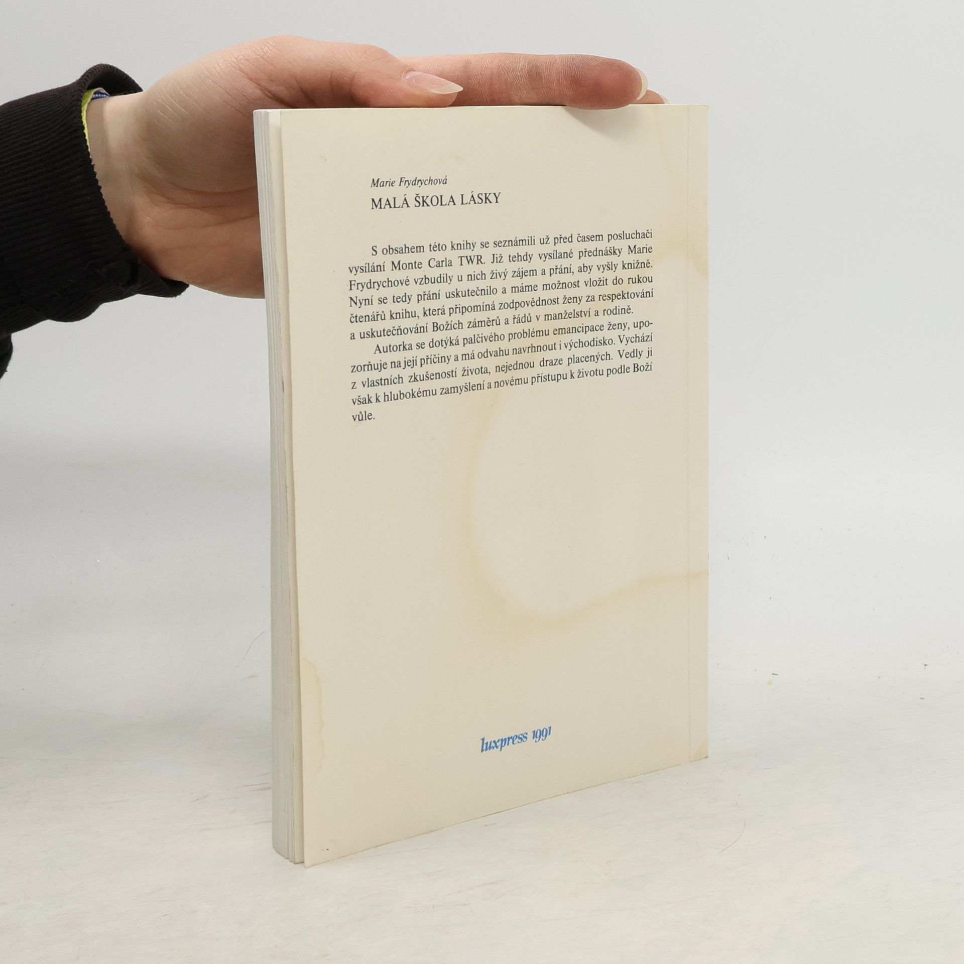 Kniha připomíná zodpovědnost ženy za respektování a uskutečňování Božích záměrů a řádů v manželství a rodině. Autorka se dotýká palčivého problému emancipace ženy, upozorňuje na její příčiny a má odvahu navrhnout i východisko. Vychází z vlastních zkušeností života, nejednou draze placených. Vedly ji však k hlubokému zamyšlení a novému přístupu k životu podle Boží vůle.