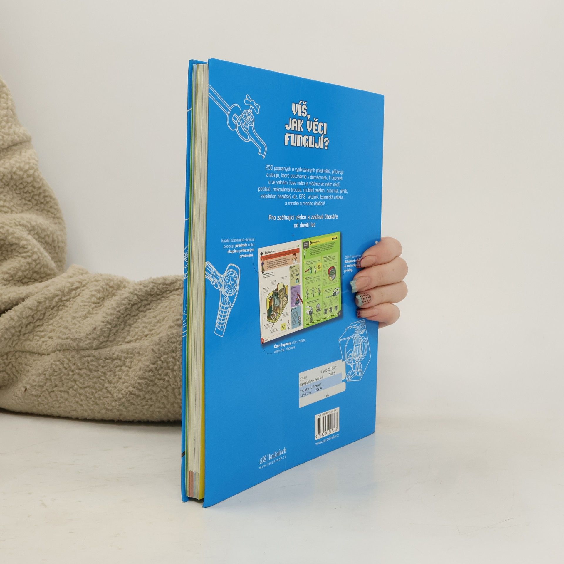 Pro začínající vědce a všechny zvídavé čtenáře od devíti let tato kniha popisuje a vyobrazuje 250 předmětů, přístrojů a strojů, které používáme v domácnosti, k dopravě a ve volném čase nebo je vídáme ve svém okolí: počítač, mikrovlnnou troubu, mobilní telefon, platební kartu, prodejní automat, jeřáb, eskalátor, hasičský vůz, GPS, vrtulník, kosmickou raketu… a mnoho a mnoho dalších!