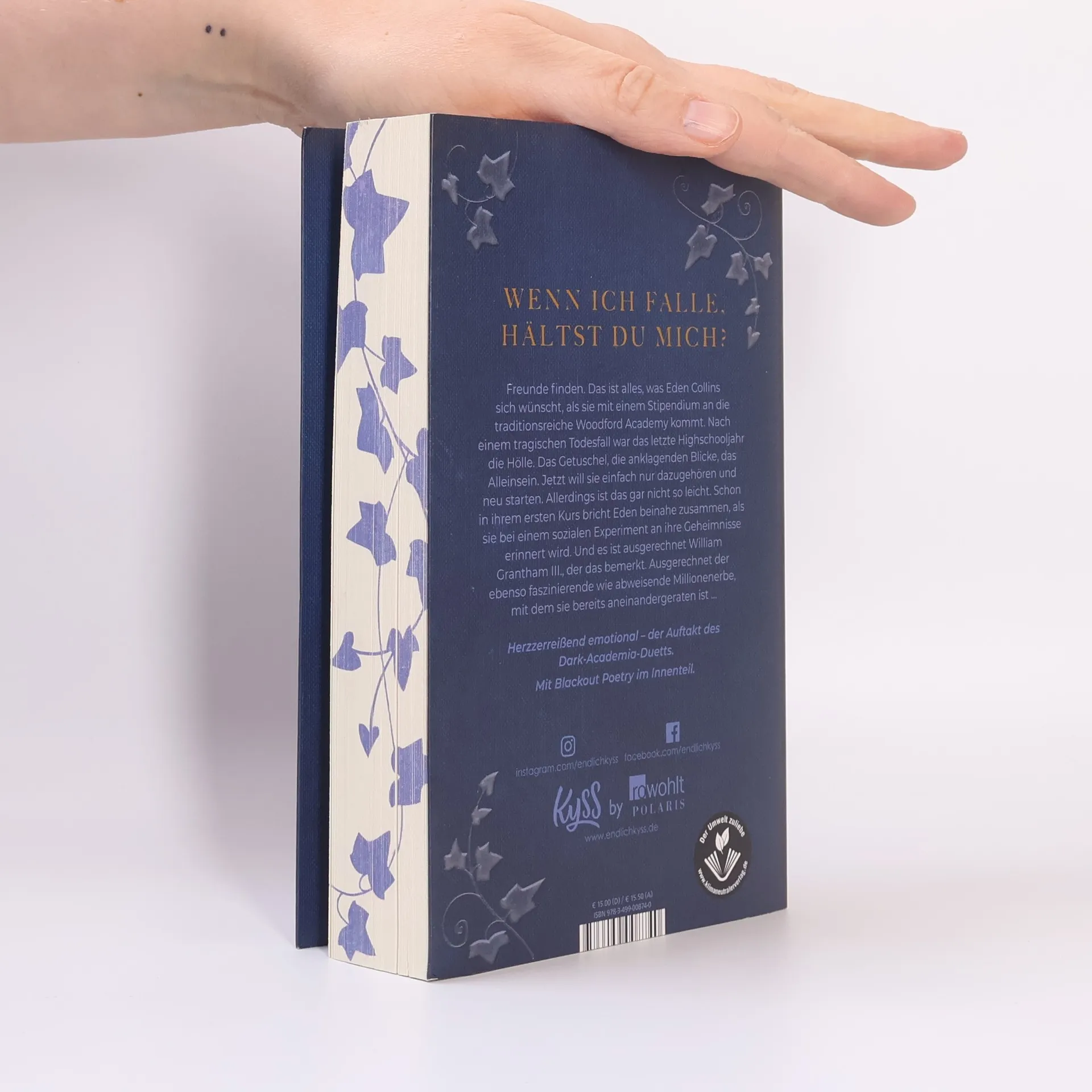 Wenn ich falle, hältst du mich? Der Auftakt zum Dark-Academia-Duett von Spiegel-Bestseller-Autorin Nikola Hotel. Freunde finden. Das ist alles, was Eden Collins sich wünscht, als sie mit einem Stipendium an die traditionsreiche Woodford Academy kommt. Nach einem tragischen Todesfall war das letzte Highschooljahr die Hölle. Das Getuschel, die anklagenden Blicke, das Alleinsein. Jetzt will sie einfach nur dazugehören und neu starten. Allerdings ist das gar nicht so leicht. Schon in ihrem ersten Kurs bricht Eden beinahe zusammen, als sie bei einem sozialen Experiment an ihre Geheimnisse erinnert wird. Und es ist ausgerechnet William Grantham III., der das bemerkt. Ausgerechnet der ebenso faszinierende wie abweisende Millionenerbe, mit dem sie bereits aneinandergeraten ist … Herzzerreißend emotional – für alle Fans von mitreißenden Liebesromanen und Dark Academia. Mit Blackout Poetry im Innenteil.