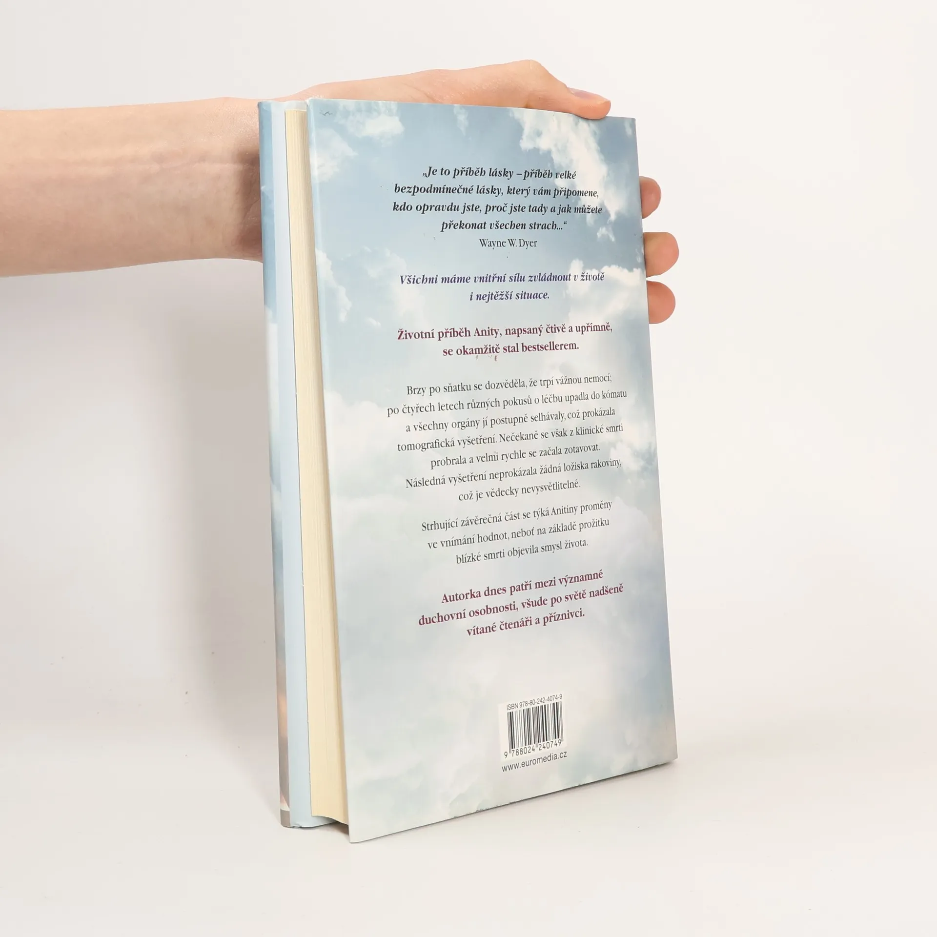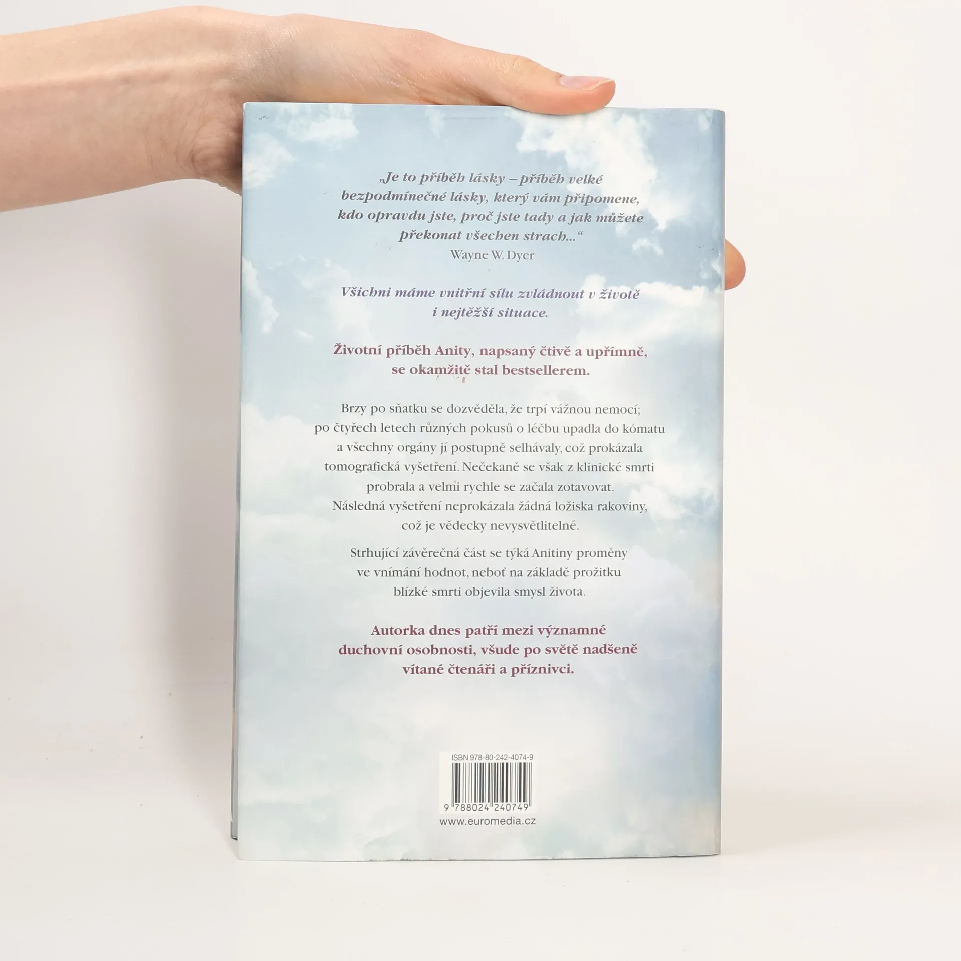 Životní příběh Anity, napsaný čtivě a upřímně, se okamžitě stal bestsellerem a autorka dnes patří mezi významné osobnosti, nadšeně vítané čtenáři po celém světě. Brzy po sňatku u ní diagnostikovali rakovinu, po čtyřech letech různých pokusů o léčbu upadla do kómatu a všechny orgány jí postupně selhávaly, což prokázala tomografická vyšetření. Nečekaně se však z klinické smrti probrala a velmi rychle se začala zotavovat. Následná vyšetření neprokázala žádná ložiska rakoviny, což je zcela neuvěřitelné a vědecky nevysvětlitelné. Strhující závěrečná část se týká autorčiny proměny ve vnímání hodnot, neboť na základě prožitku blízké smrti objevila smysl života. Anita Moorjani ve své inspirativní autobiografii líčí, jak jí po čtyřech letech boje se zákeřnou nemocí tělo vypovědělo službu. Dostala se do neobyčejného stavu zážitku blízké smrti a v něm si uvědomila svou vlastní hodnotu… i skutečnou příčinu své nemoci. Když nabyla vědomí, její stav se zlepšoval takovou rychlostí, že ji za několik týdnů bez jakýchkoli známek rakoviny propustili z nemocnice. Vyrůstala v tradiční hinduistické rodině uprostřed převážně čínské a britské společnosti a odmalička ji silně ovlivňovaly nejrůznější kulturní a náboženské zvyklosti.