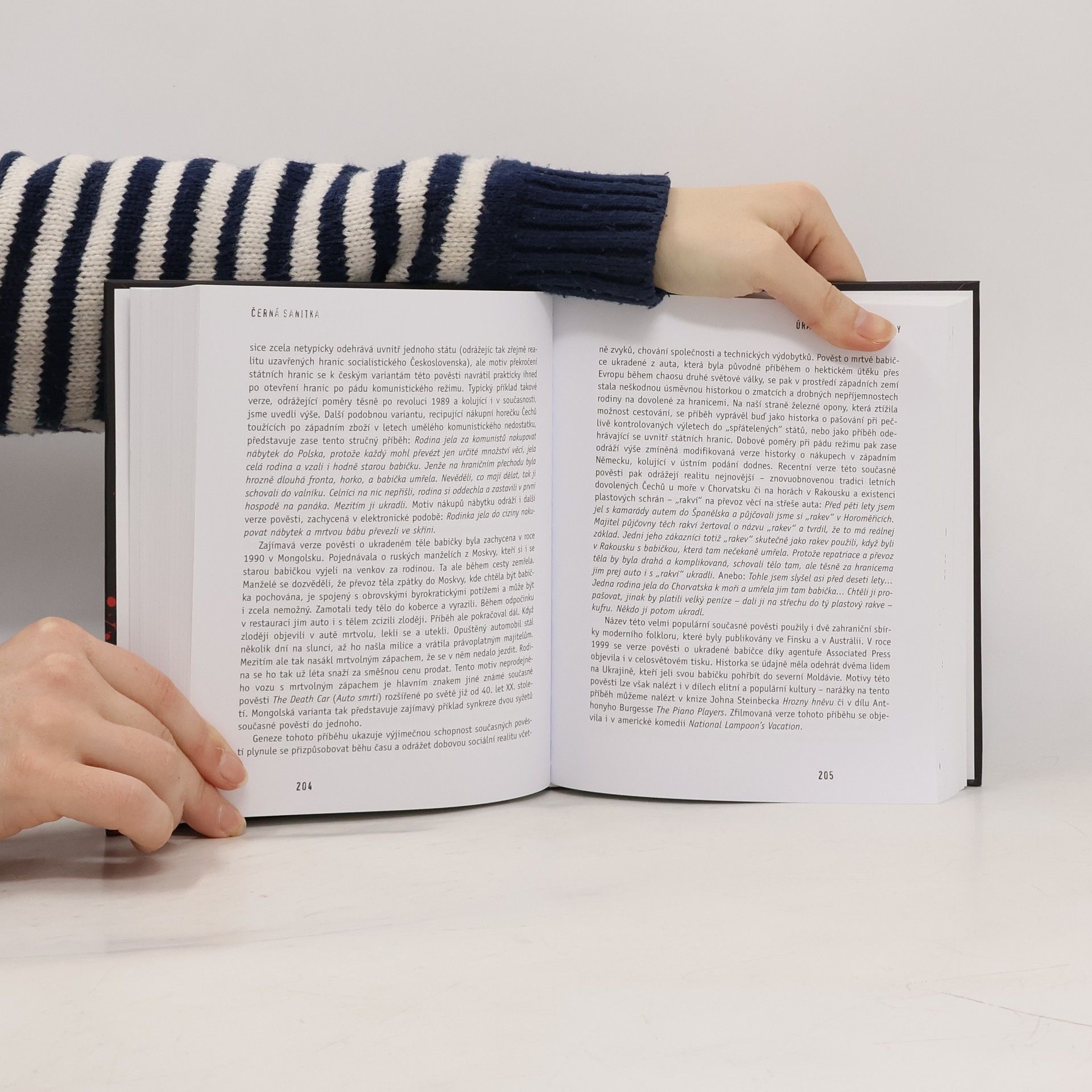 Černá sanitka a jiné děsivé příběhy je sbírkou 136 současných pověstí, získaných od více než 60 vypravěčů z celé České republiky. Příběhy obsažené v této knize se vypráví jako pravdivé historky při nejrůznějších příležitostech. Svými vypravěči i posluchači jsou obvykle považovány za pravdivé, většinou se má za to, že je zažil přímo vypravěč, člen jeho rodiny nebo nejlepší kamarád. V knize naleznete strašidelné pověsti o vrazích a maniacích ohrožujících nevinné studentky na vysokoškolských kolejích nebo milence v autě, ale i příběh o vraždícím přízraku německého vojáka z druhé světové války...