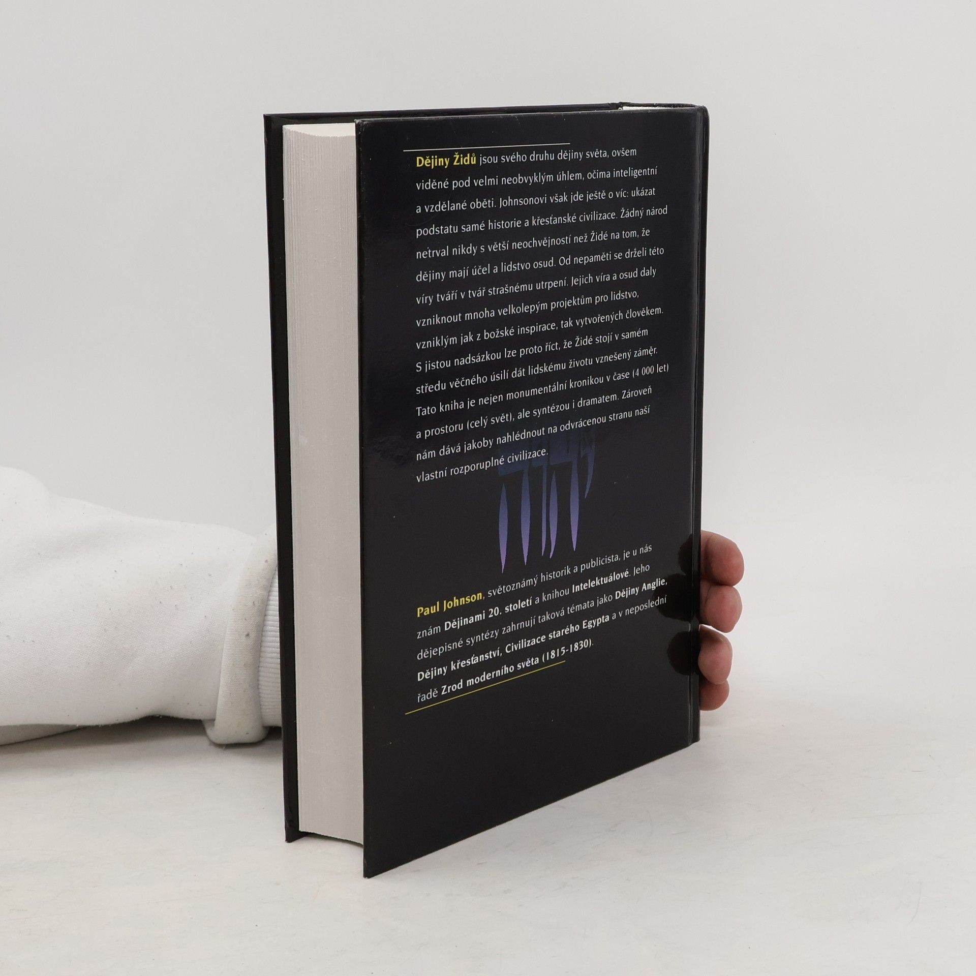 Dějiny Židů jsou svého druhu dějiny světa, ovšem viděné pod velmi neobvyklým úhlem, očima inteligentní a vzdělané oběti. Johnsonovi však jde ještě o víc: ukázat podstatu samé historie a křesťanské civilizace. Žádný národ netrval nikdy s větší neochvějností než Židé na tom, že dějiny mají účel a lidstvo osud. Od nepaměti se drželi této víry tváří v tvář strašnému utrpení. Jejich víra a osud daly vzniknout mnoha velkolepým projektům pro lidstvo, vzniklým jak z božské inspirace, tak vytvořených člověkem. S jistou nadsázkou lze proto říci, že Židé stojí v samém středu věčného úsilí dát lidskému životu vznešený záměr. Tato kniha je nejen monumentální kronikou v čase (4 000 let) a prostoru (celý svět), ale syntézou i dramatem. Zároveň nám dává jakoby nahlédnout na odvrácenou stranu naší vlastní rozporuplné civilizace.