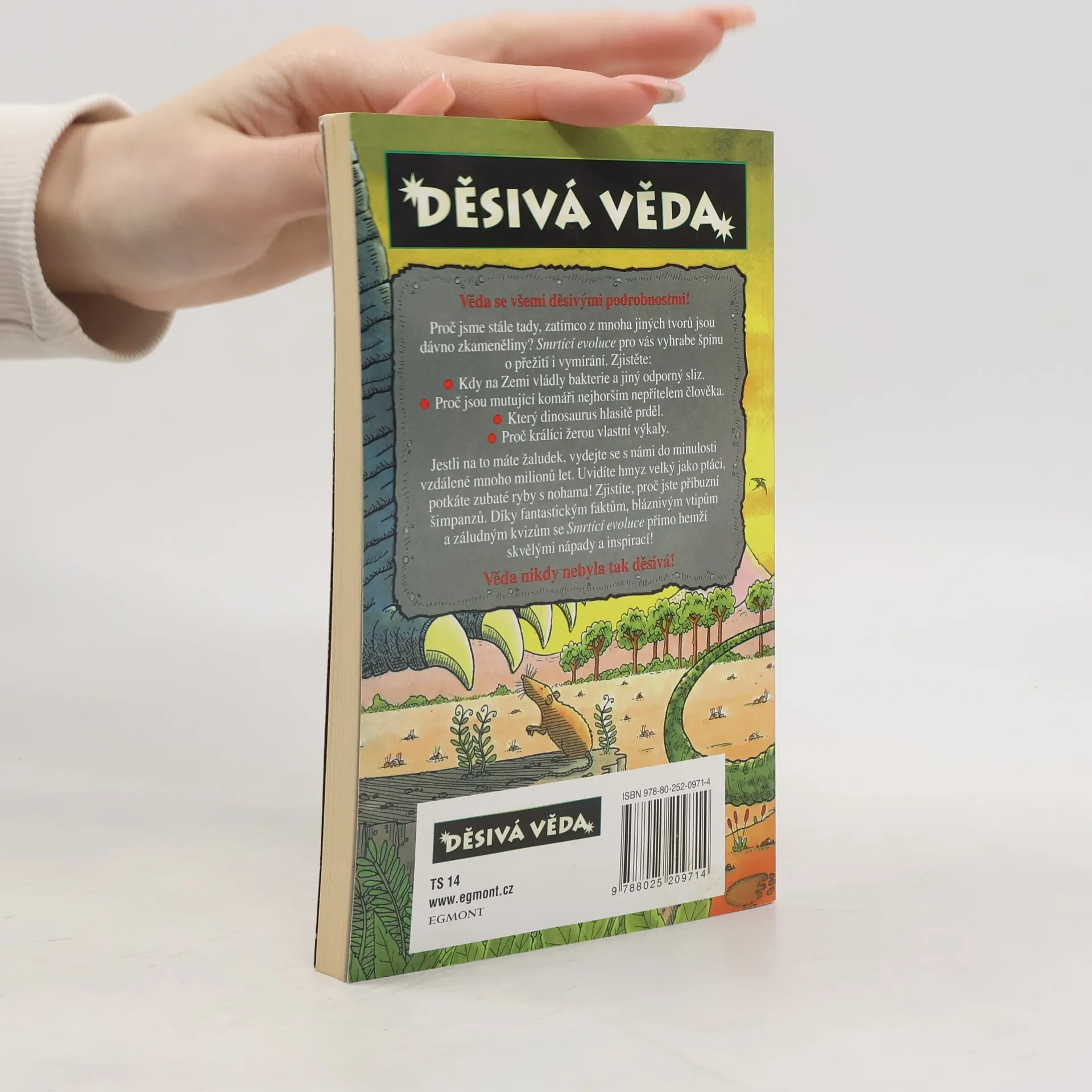 Proč jsme stále tady, zatímco z mnoha jiných tvorů jsou dávno zkameněliny? Smrtící evoluce pro vás vyhrabe špínu o přežití i vymírání. Zjistěte: Kdy na Zemi vládly bakterie a jiný odporný sliz. Proč jsou mutující komáři nejhorším nepřítelem člověka. Který dinosaurus hlasitě prděl. Proč králíci žerou vlastní výkaly. Jestli na to máte žaludek, vydejte se s námi do minulosti vzdálené mnoho milionů let. Uvidíte hmyz velký jako ptáci, potkáte zubaté ryby s nohama! Zjistíte, proč jste příbuzní šimpanzů. Díky fantastickým faktům, bláznivým vtipům a záludným kvizům se Smrtící evoluce přímo hemží skvělými nápady a inspirací! Věda nikdy nebyla tak děsivá!