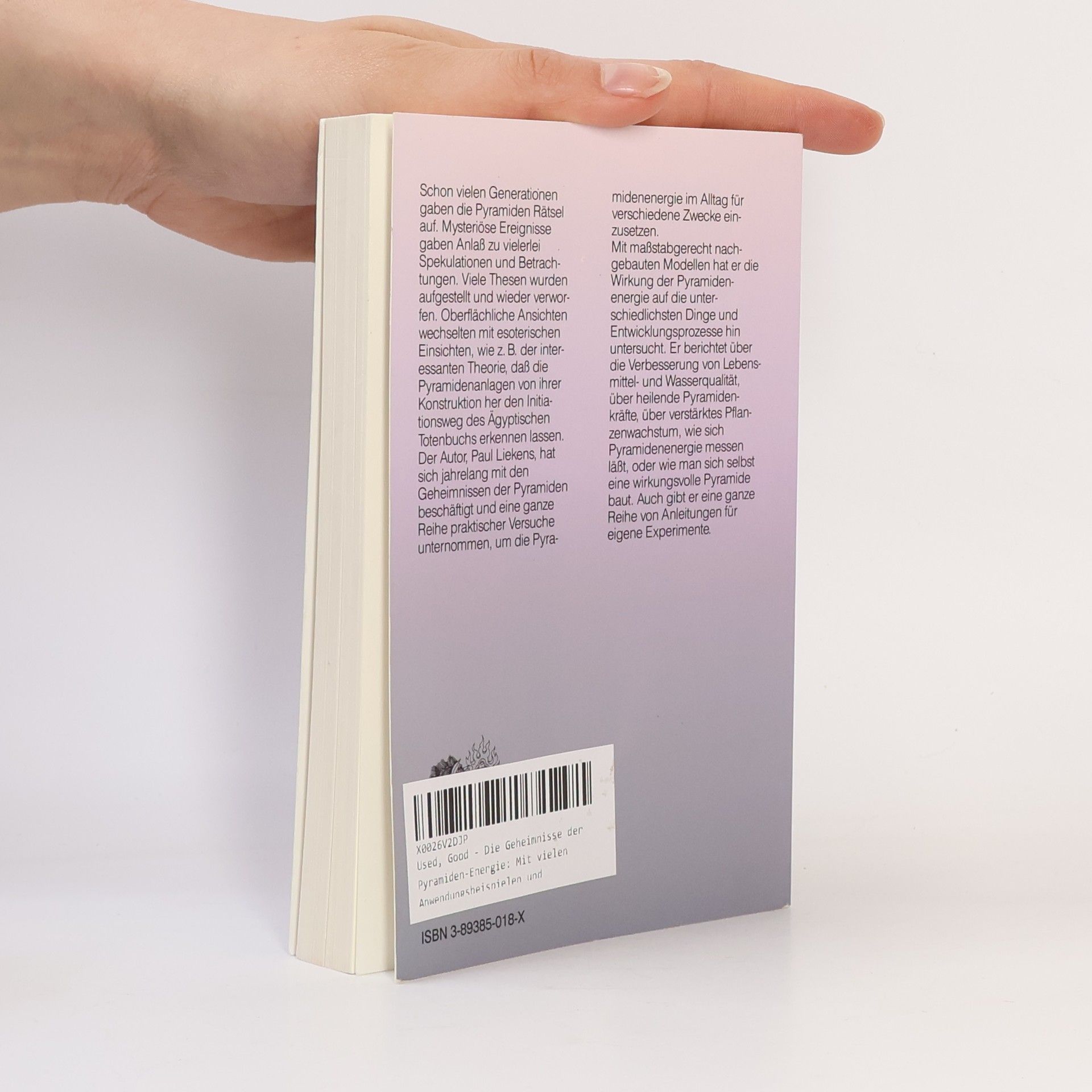 Schon vielen Generationen gaben die Pyramiden Rätsel auf. Mysteriöse Ereignisse gaben Anlass zu vielerlei Spekulationen und Betrachtungen. Viele Thesen wurden aufgestellt und wieder verworfen. Öberflächliche Ansichten wechselten mit esoterischen Einsichten, wie z. B. der interessanten Theorie, dass die Pyramidenanlagen von ihrer Konstruktion her den Initiationsweg des Ägyptischen Totenbuchs erkennen lassen. Der Autor, Paul Liekens, hat sich jahrelang mit den Geheimnissen der Pyramiden beschäftigt und eine ganze Reihe praktischer Versuche unternommen, um die Pyramidenenerige im Alltag für verschiedene Zwecke einzusetzen. Mit maßstabgerecht nachgebauten Modellen hat er die Wirkung der Pyramidenenergie auf die unterschiedlichsten Dinge und Entwicklungsprozesse hin untersucht. Er berichtet über die Verbesserung von Lebensmittel- und Wasserqualität, über heilende Pyramidenkräfte, über verstärktes Pflanzenwachstum, wie sich Pyramidenenerige messen lässt, oder wie man sich selbst eine wirkungsvolle Pyramide baut. Auch gibt er eine ganze Reihe von Anleitungen für eigene Experimente.