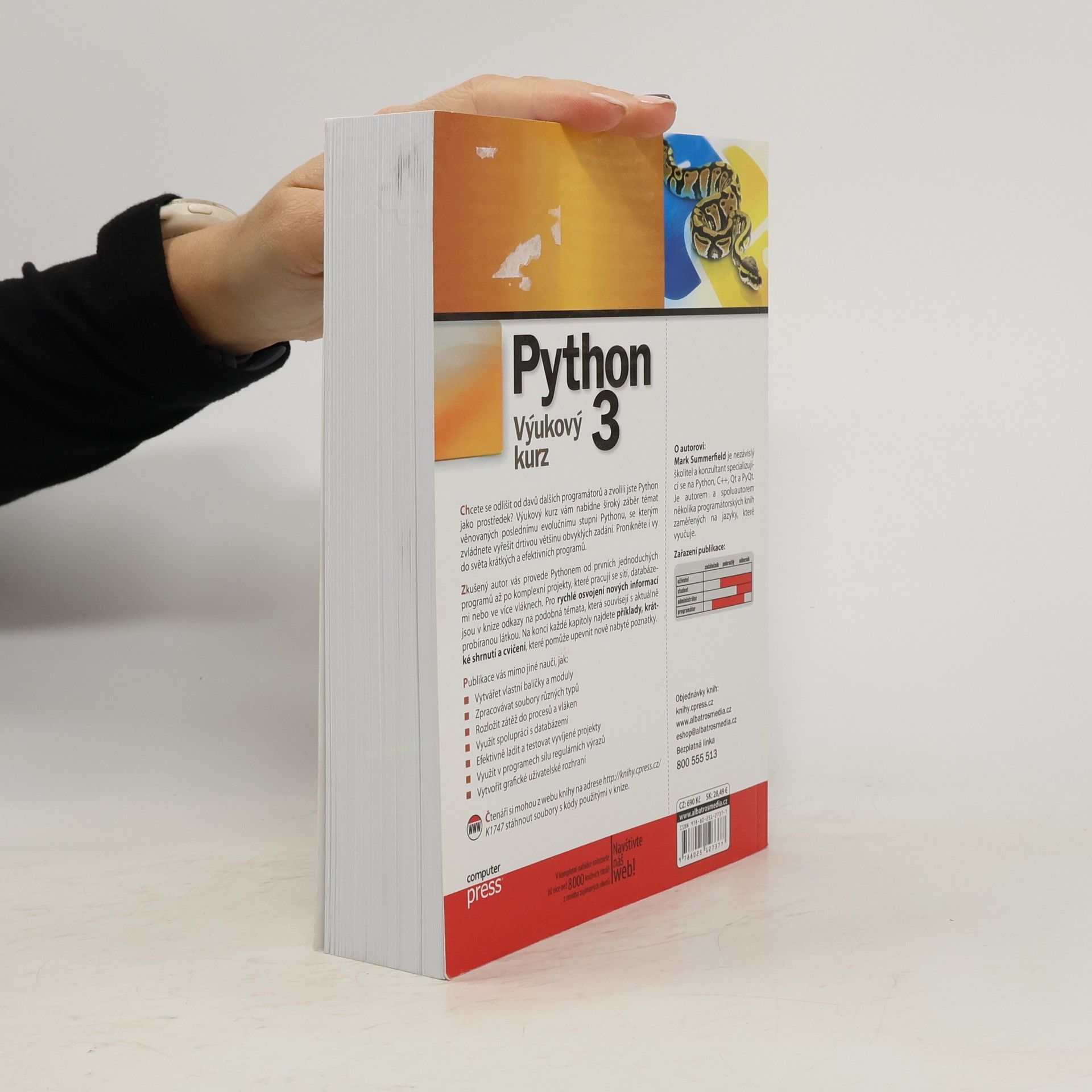 Python je multiplatformní jazyk známý svou jednoduchostí a stručností. V této publikaci se naučíte vytvářet programy s minimem kódu ve srovnání s jazyky jako C++ a Java, přičemž výklad je zaměřen na nejnovější verzi jazyka 3. Kromě základních postupů se seznámíte s vícevláknovými aplikacemi, spoluprací s databázemi a tvorbou grafického uživatelského rozhraní. Pokud chcete vyniknout mezi ostatními programátory a zvolili jste Python, tento kurz pokrývá široké spektrum témat, které vám umožní efektivně řešit běžné úkoly. Autor vás provede od jednoduchých programů až po složitější projekty, které zahrnují síťové a databázové operace či vícevláknové zpracování. K rychlému osvojení nových informací slouží odkazy na související témata, a na konci každé kapitoly najdete příklady, shrnutí a cvičení pro upevnění znalostí. Naučíte se například: - Vytvářet vlastní balíčky a moduly - Zpracovávat soubory různých typů - Rozložit zátěž do procesů a vláken - Spolupracovat s databázemi - Efektivně ladit a testovat projekty - Využívat regulární výrazy - Tvořit grafické uživatelské rozhraní Mark Summerfield, autor a nezávislý školitel, se specializuje na Python, C++, Qt a PyQt a napsal několik knih zaměřených na tyto jazyky.