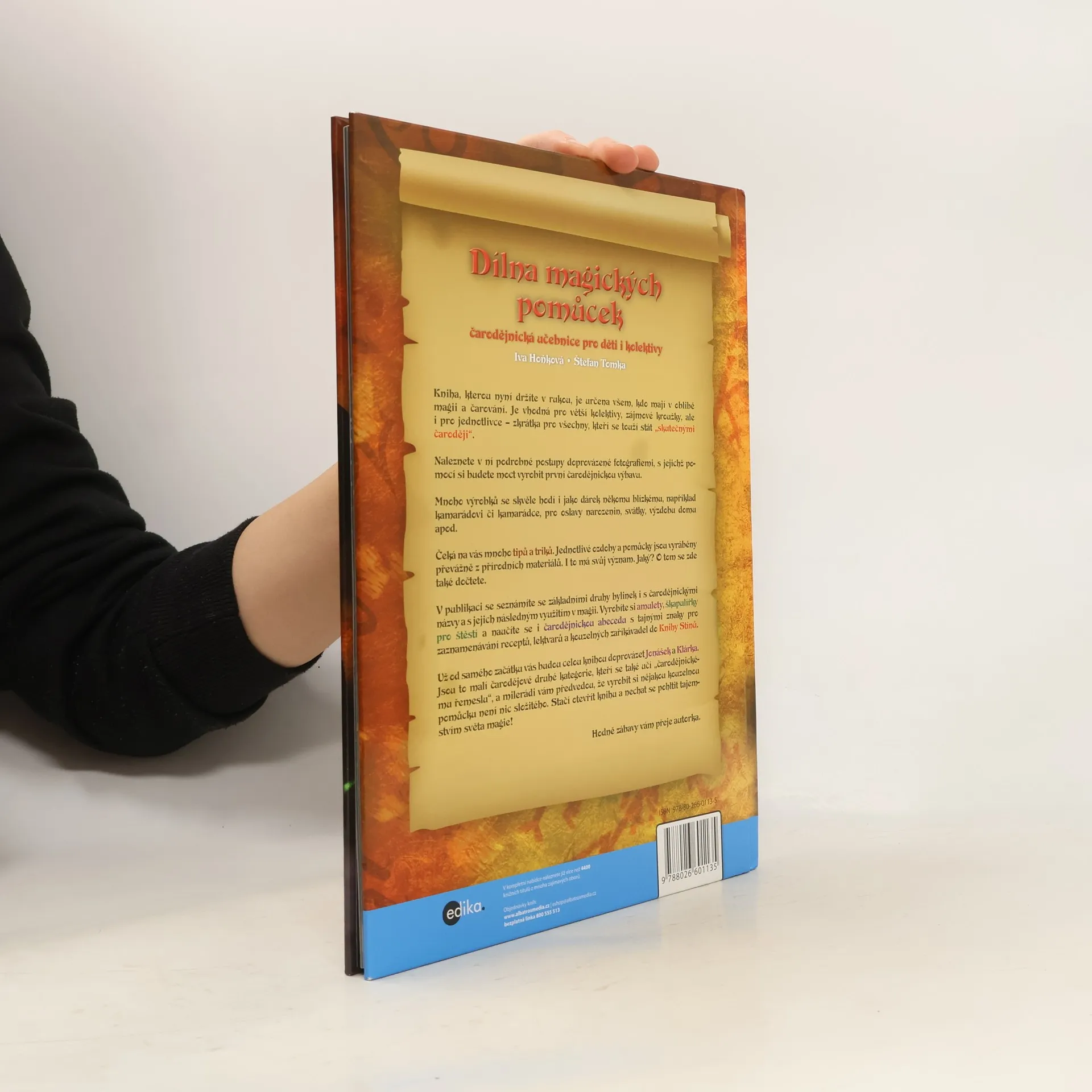 Kouzelnická příručka, kterou právě držíte v rukou je učebnicí pro všechny, kteří rádi čarují. Je určena pro děti předškolního věku a žáky prvního stupně základní školy, družiny, výtvarné kroužky i jednotlivce. Naleznete zde návody na výrobu čarodějnických pomůcek. Jednotlivé postupy jsou doprovázeny textovým popisem i fotografickými ukázkami krok za krokem. Můžete si vytvořit netradiční výrobky jen tak pro potěšení, stejně jako působivé dárky a dekorace pro každou příležitost.