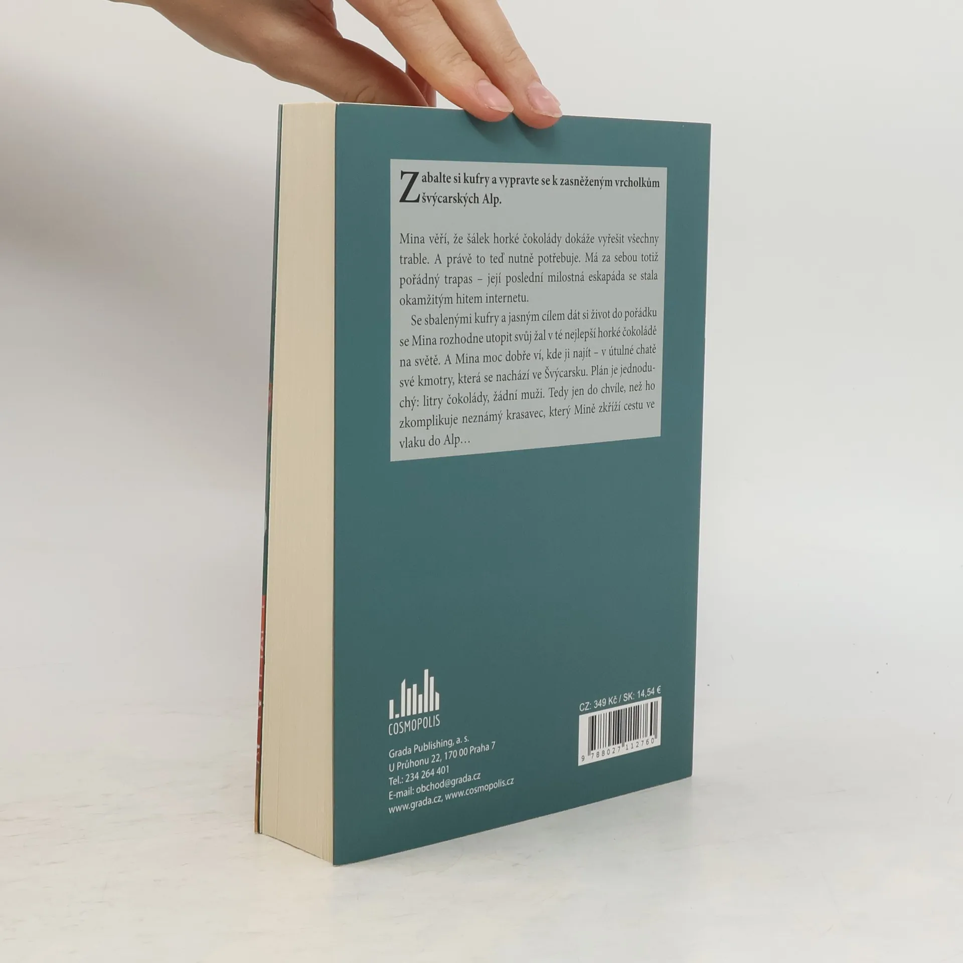 Minna věří, že šálek horké čokolády dokáže vyřešit všechny trable. A právě to teď potřebuje. Má za sebou totiž pořádný trapas – její poslední milostná eskapáda se stala okamžitým hitem internetu. Se sbalenými kufry a jasným cílem dát si do pořádku život, se Minna rozhodne utopit svůj žal v té nejlepší horké čokoládě na světě. A Minna moc dobře ví, kde ji najít – v útulné chatě své kmotry, která se nachází ve Švýcarsku. Plán je jednoduchý: litry čokolády, žádní muži. Tedy do té chvíle, než ho zkomplikuje neznámý krasavec, který Minně zkříží cestu ve vlaku do Alp…