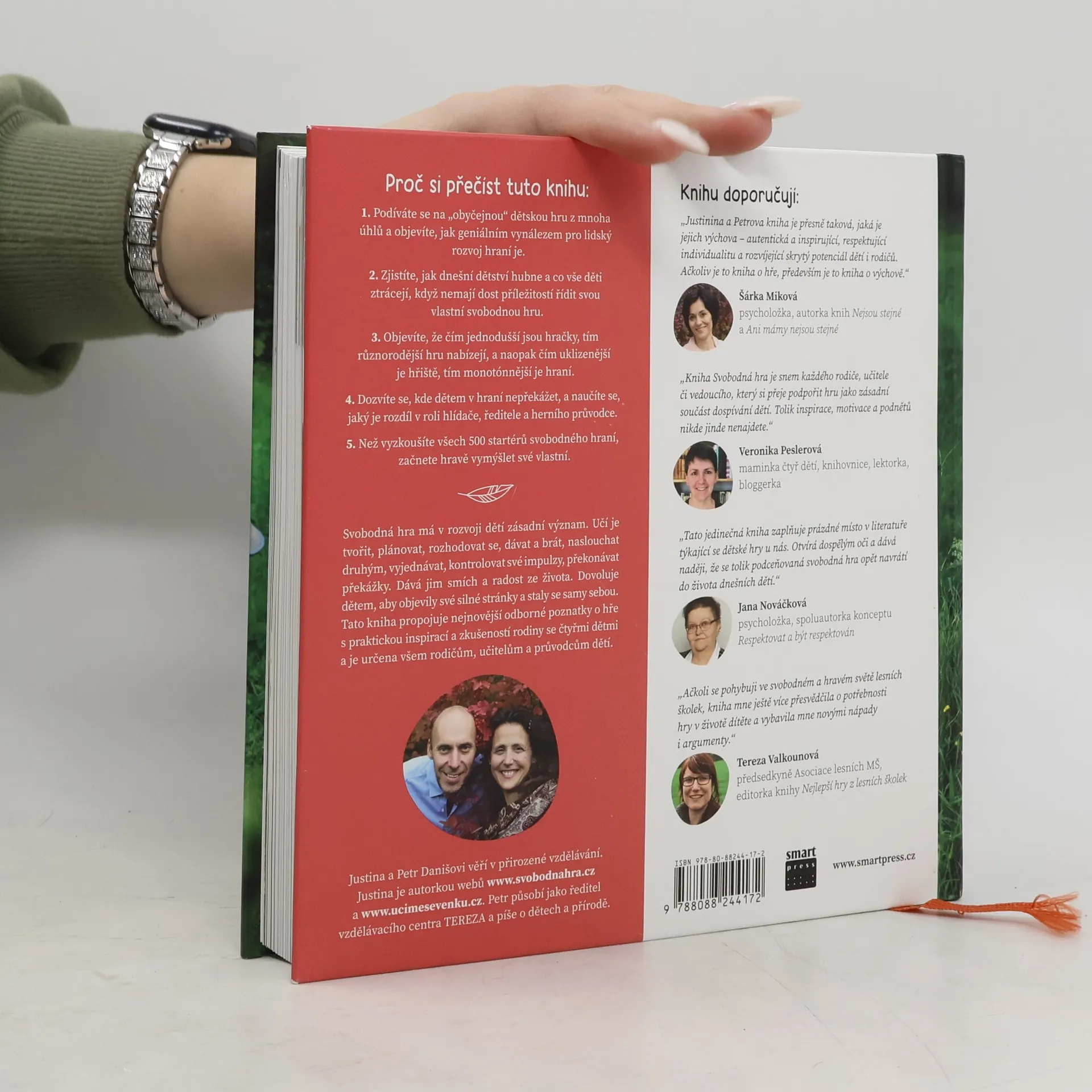 Jak nechat vyrůst radostné, odolné a samostatné děti. Kniha propojuje nejnovější odborné poznatky o hře s praktickou inspirací a zkušeností rodiny se čtyřmi dětmi a je určena všem rodičům, učitelům a průvodcům dětí. Svobodná hra má v rozvoji dětí zásadní význam. Učí je tvořit, plánovat, rozhodovat se, dávat a brát, naslouchat druhým, vyjednávat, kontrolovat své impulzy, překonávat překážky. Dává jim smích a radost ze života. Dovoluje dětem, aby objevily své silné stránky a staly se samy sebou. Kniha obsahuje více než 500 startérů hraní. Proč si přečíst tuto knihu: 1. Podíváte se na „obyčejnou“ dětskou hru z mnoha úhlů a objevíte, jak geniálním vynálezem pro lidský rozvoj hraní je. 2. Zjistíte, jak dnešní dětství hubne a co vše děti ztrácejí, když nemají dost příležitostí řídit svou vlastní svobodnou hru. 3. Objevíte, že čím jednodušší jsou hračky, tím různorodější hru nabízejí, a naopak čím uklizenější je hřiště, tím monotónnější je hraní. 4. Dozvíte se, kde dětem v hraní nepřekážet, a naučíte se, jaký je rozdíl v roli hlídače, ředitele a herního průvodce. 5. Než vyzkoušíte všech 500 startérů svobodného hraní, začnete hravě vymýšlet své vlastní. Justina a Petr Danišovi věří v přirozené vzdělávání. Justina je autorkou webů ucimesevenku.cz a svobodnahra.cz. Petr působí jako ředitel vzdělávacího centra TEREZA a píše o dětech a přírodě.