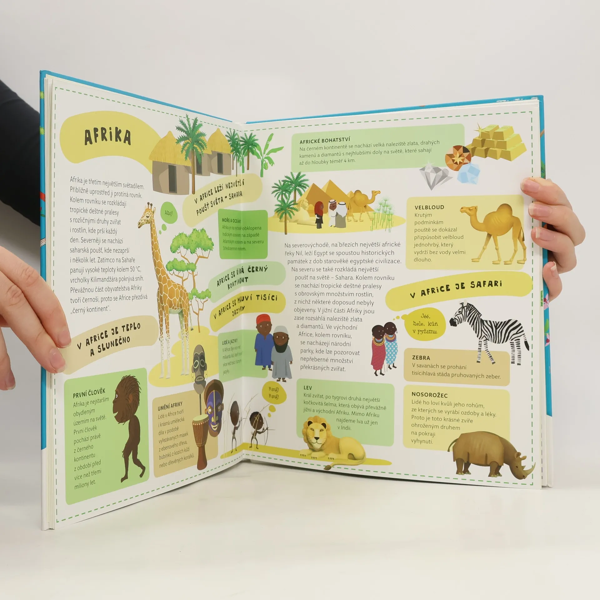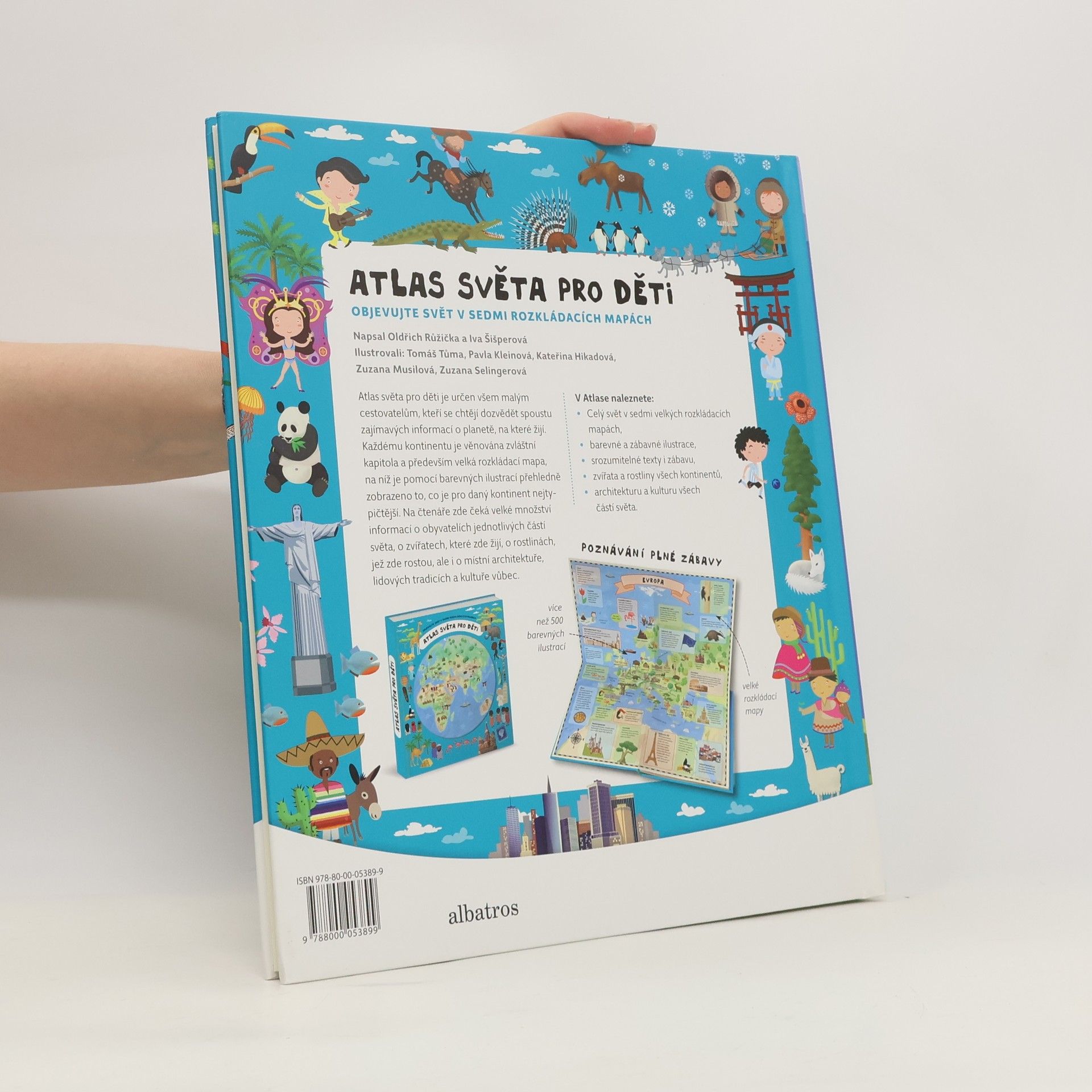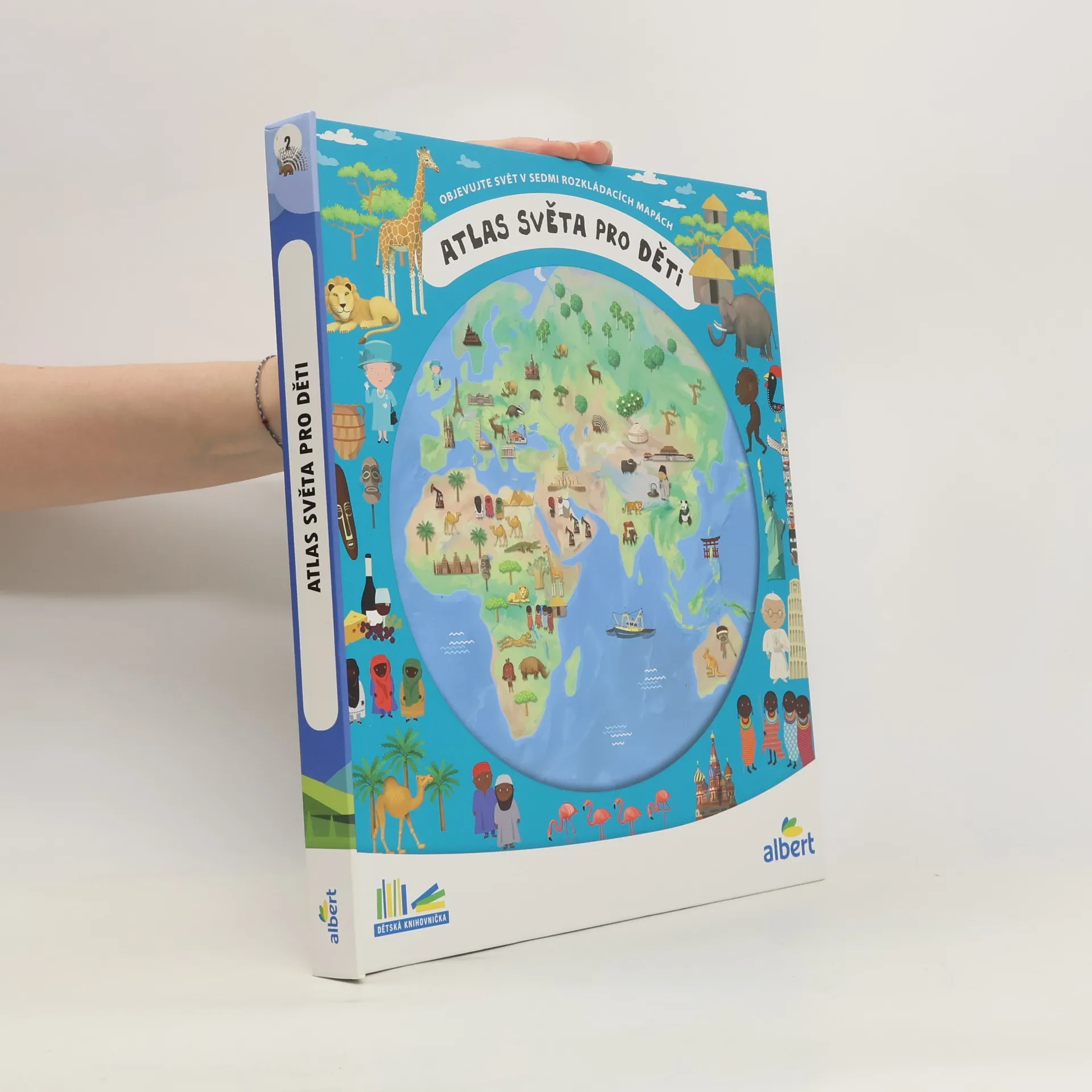 Atlas světa pro děti je určen všem malým cestovatelům, kteří se chtějí dozvědět spoustu zajímavých informací o planetě, na které žijí. Každému kontinentu je věnována zvláštní kapitola a především velká rozkládací mapa, na níž je pomoci barevných ilustrací přehledně zobrazeno to, co je pro daný kontinent nejtypičtější. Na čtenáře zde čeká velké množství informací o obyvatelích jednotlivých částí světa, o zvířatech, které zde žijí, o rostlinách, jež zde rostou, ale i o místní architektuře, lidových tradicích a kultuře vůbec. V Atlase naleznete celý svět v sedmi velkých rozkládacích mapách, patnáct vložených sešitků plných dalších podrobností a informací, barevné a zábavné ilustrace, srozumitelné texty i zábavu, zvířata a rostliny všech kontinentů, architekturu a kulturu všech částí světa.