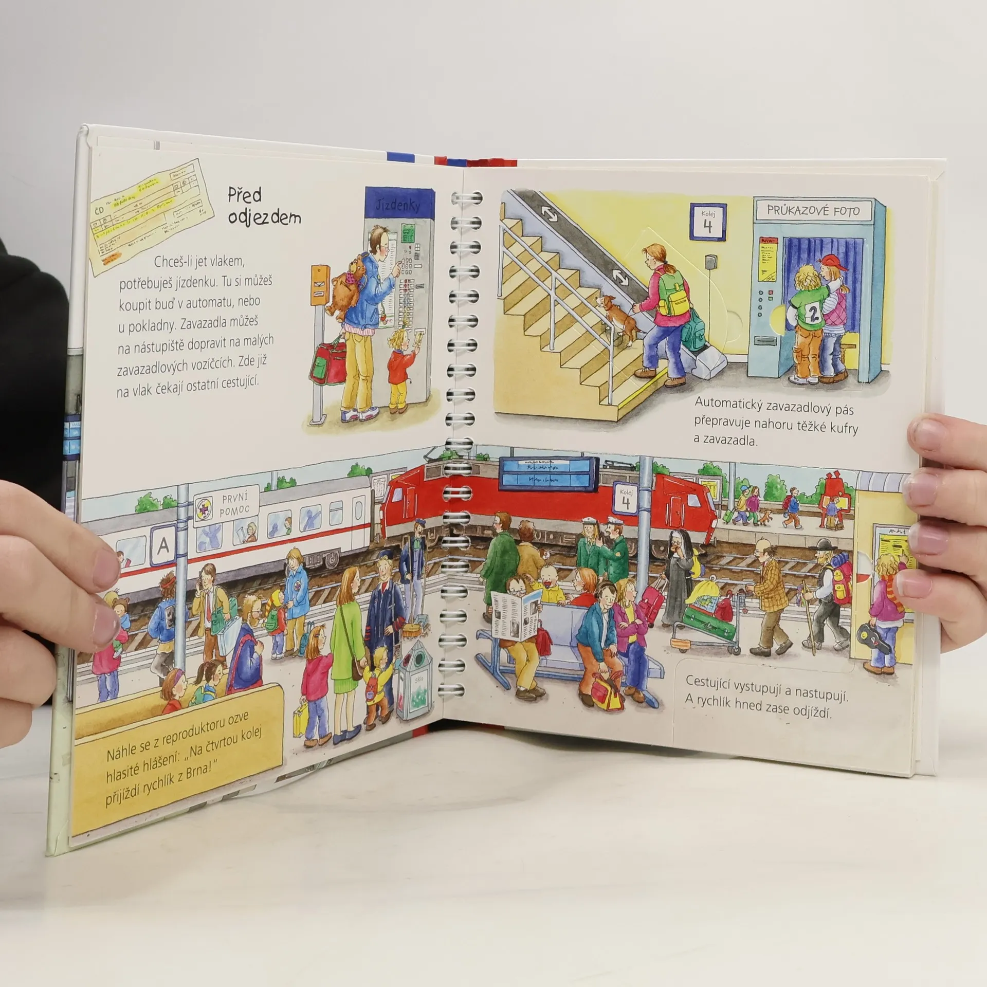 Den za dnem, stránku za stránkou a obrázek za obrázkem poznáváme a objevujeme svět. Tentokrát je knížka-hračka spíš pro kluky a jejich tatínky, kniha plná vlaků a vláčků, nádraží a informací kolem nich.